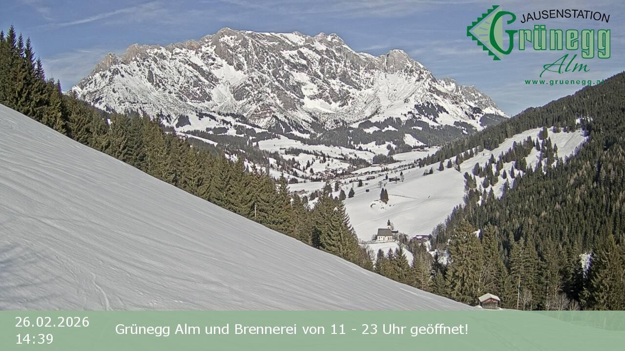 Archived webcam image showing Grünegg Alm in Dienten on 26 Feb 2026 at 16:28 15:00