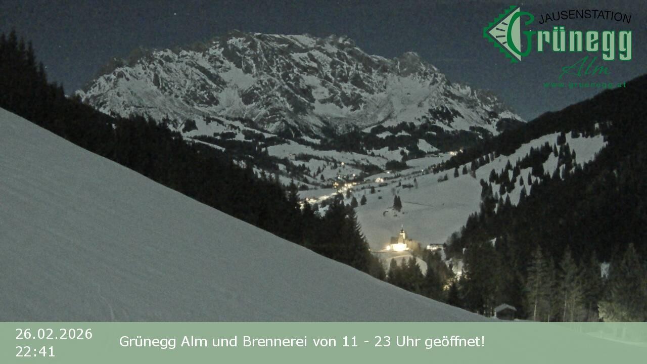 Archived webcam image showing Grünegg Alm in Dienten on 26 Feb 2026 at 20:28 Latest