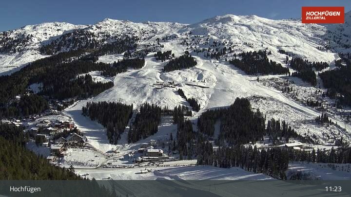 Live pictures from the car park at Hochfügen. From here you have access to the ski resort Hochfügen-Hochzillertal.