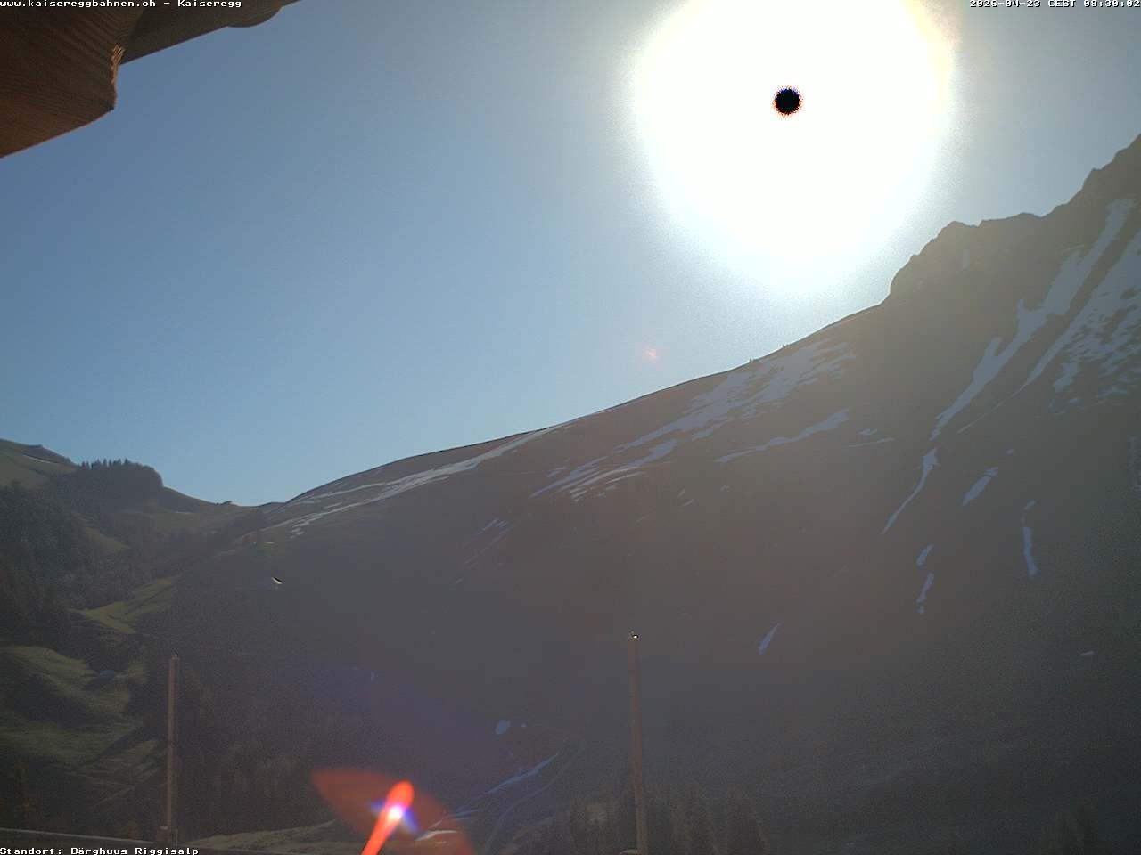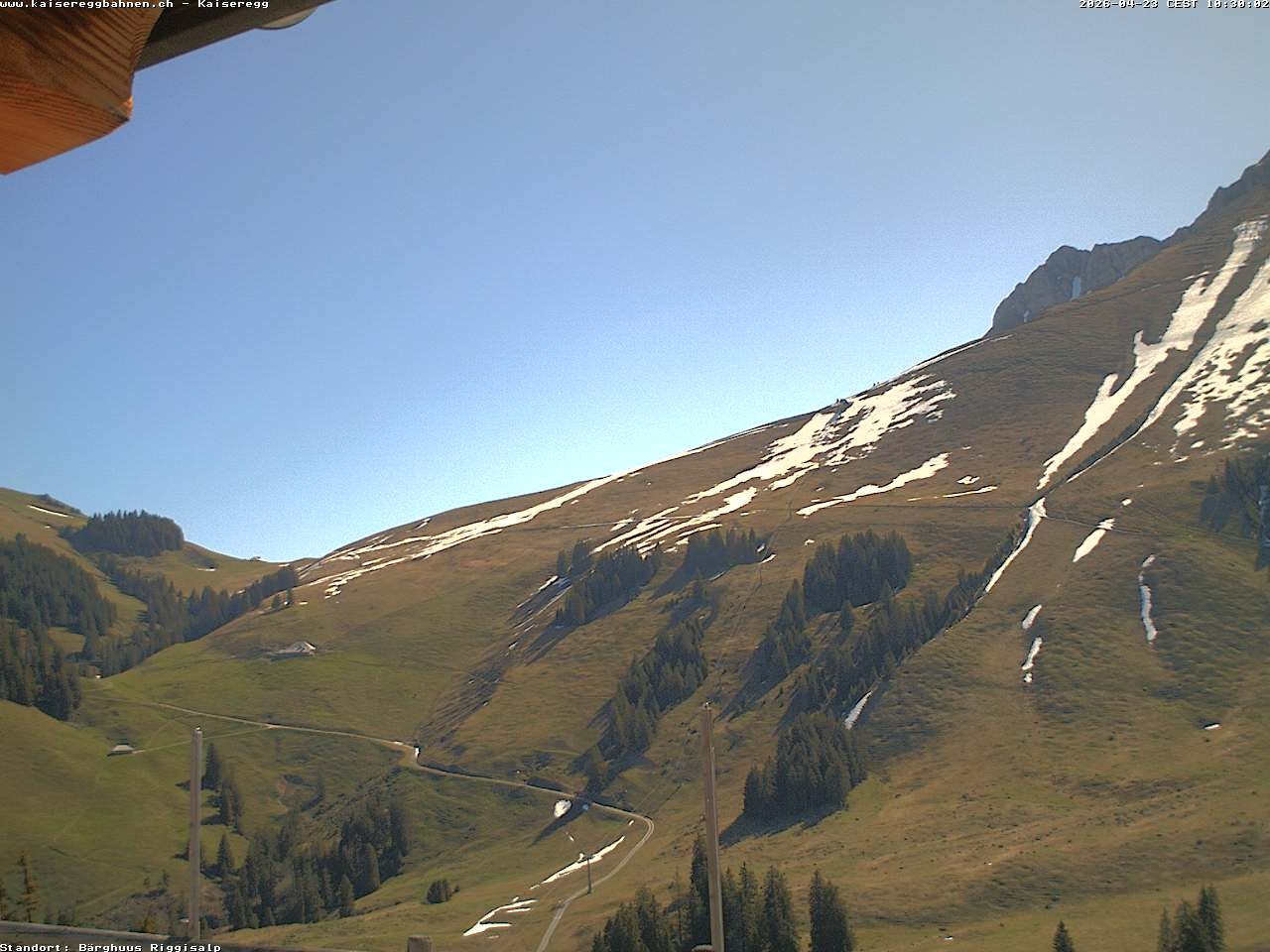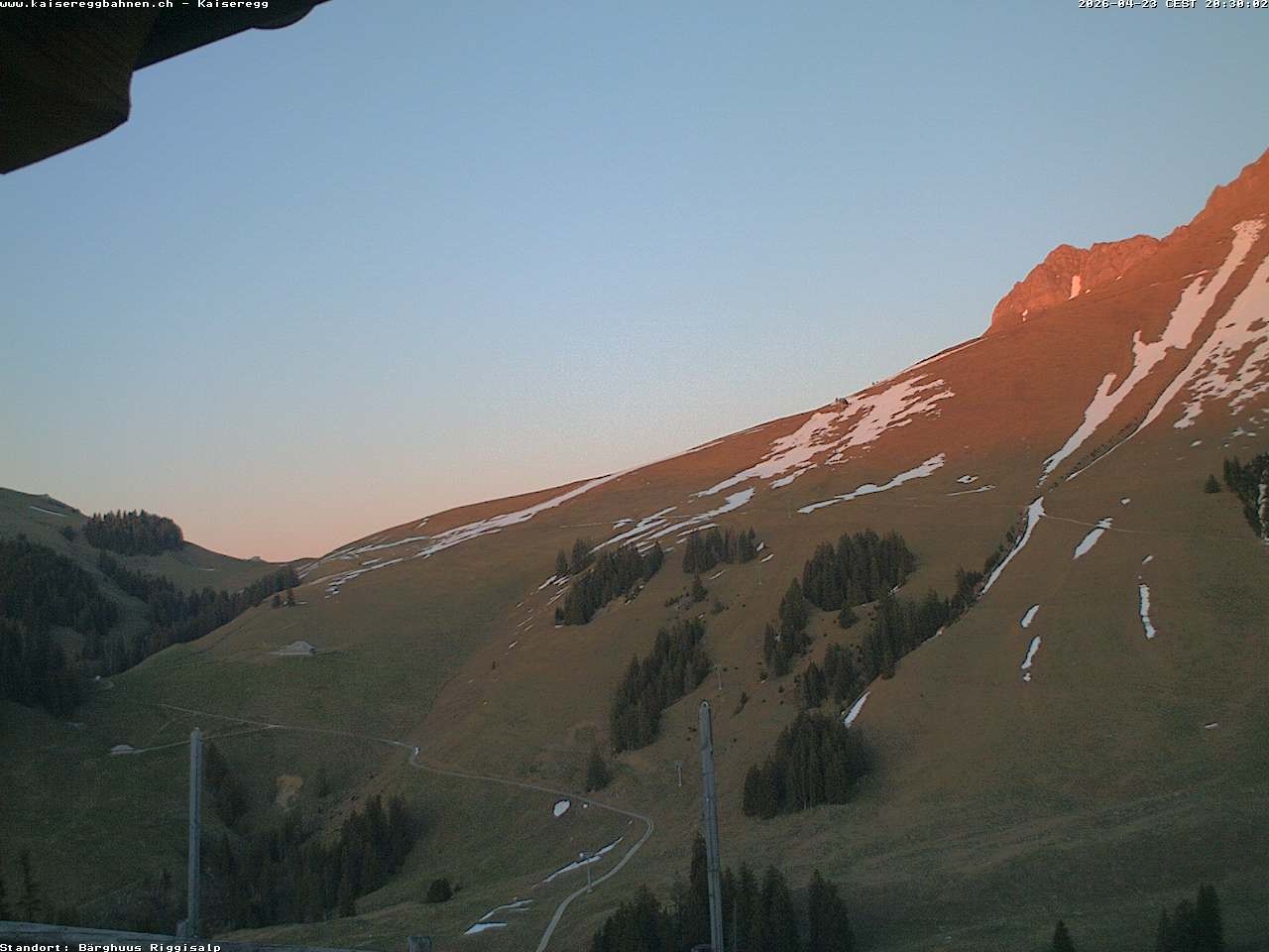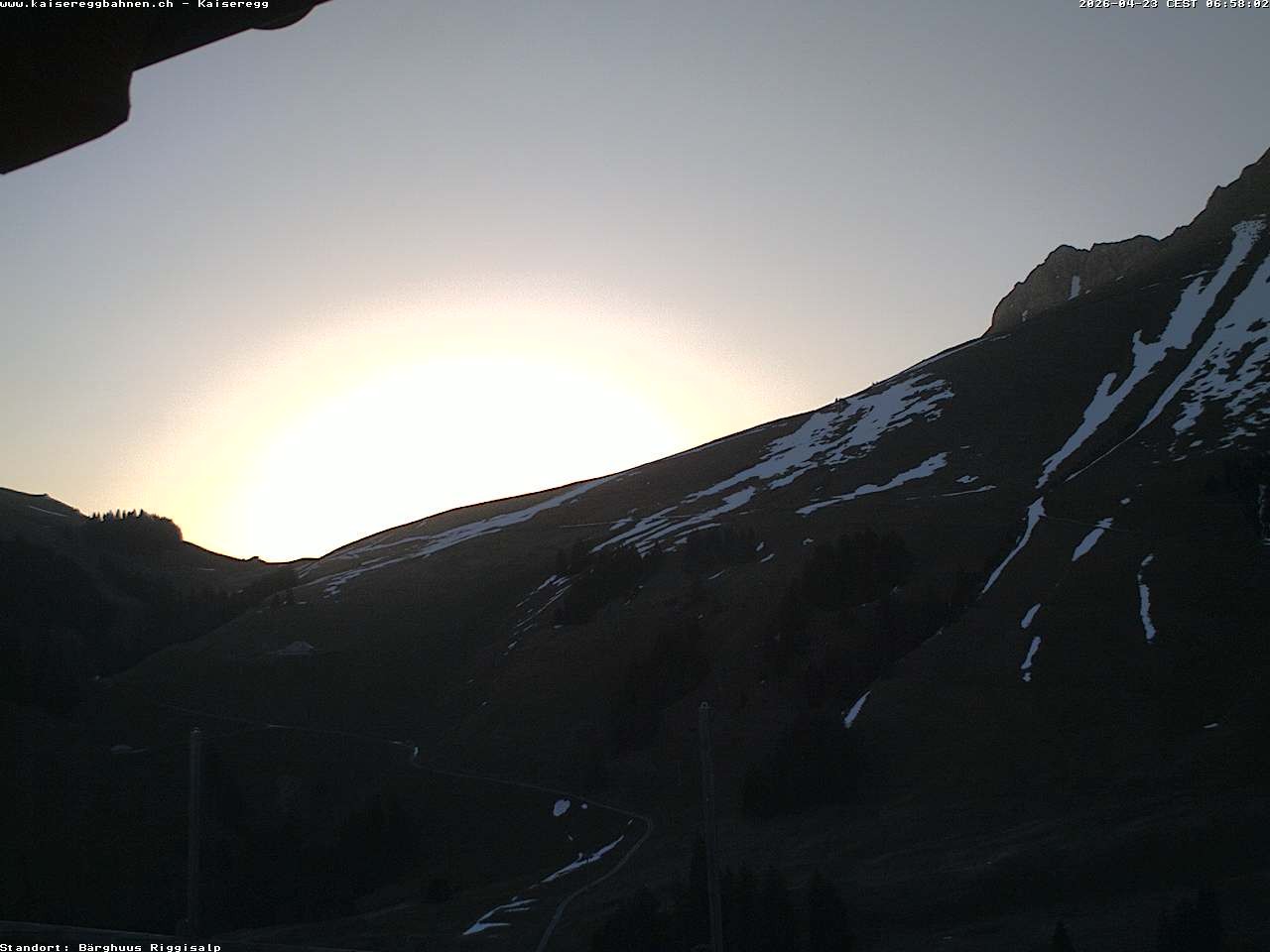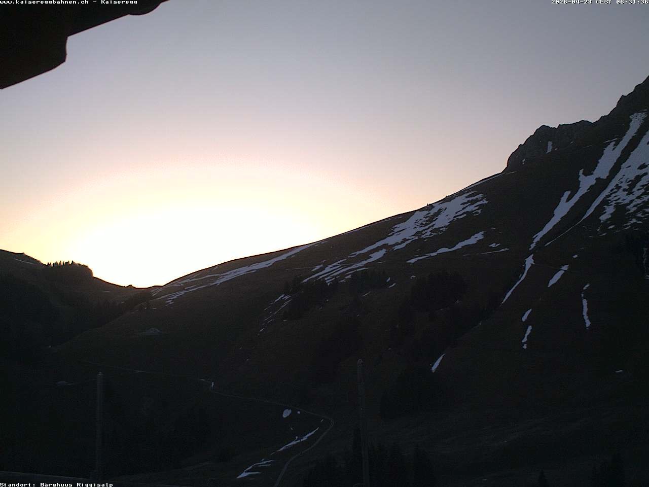 From the mountain hut Bärghuu Riggisalp, this webcam offers the view towards chairlift Kaiseregg. It is located in ski resort Schwarzsee Riggisalp Kaiseregg.