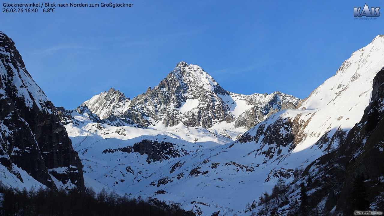 The webcam is located in Kals and offers a great view of the Grossglockner.