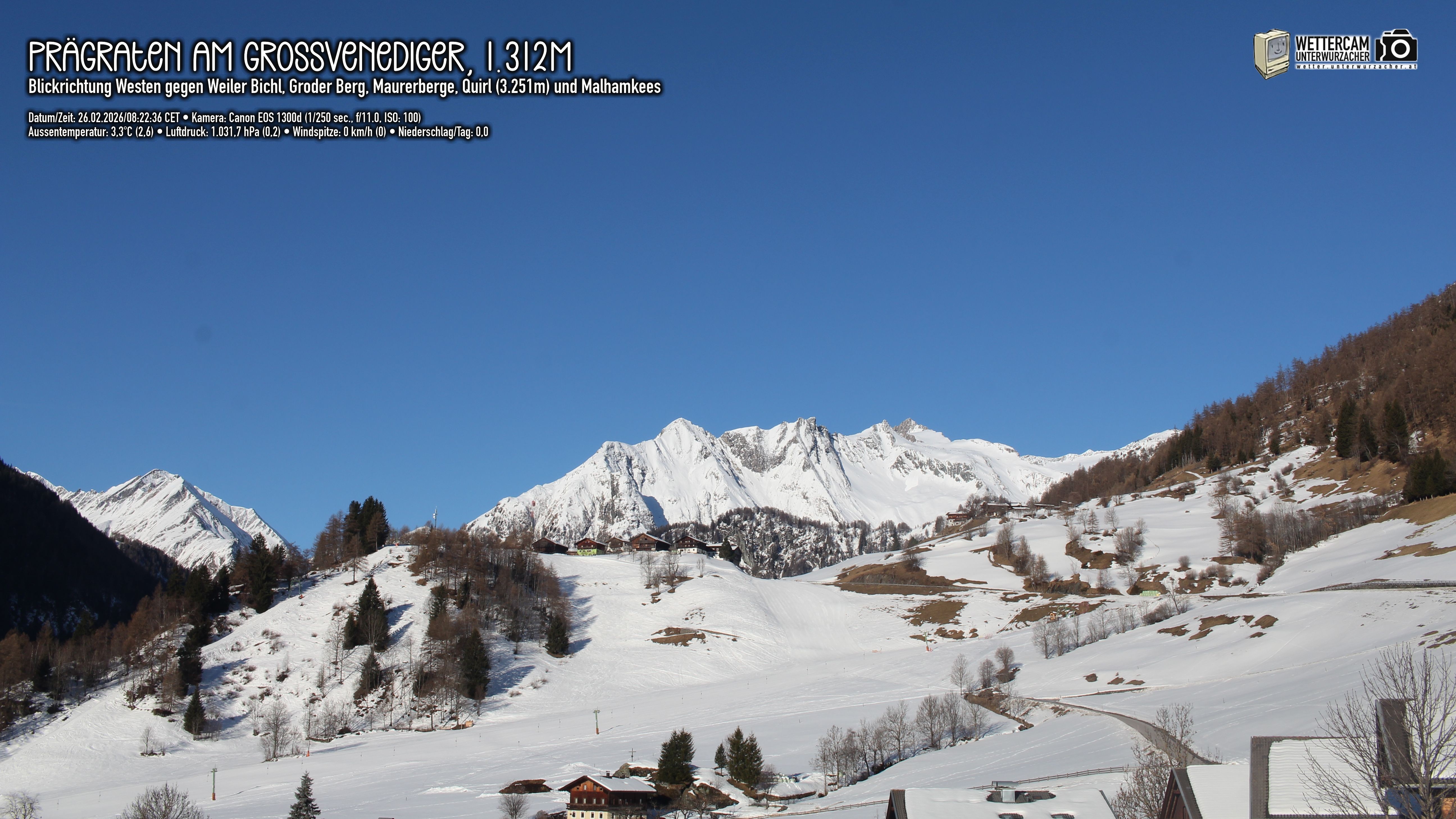 Archived webcam image showing Prägraten on 26 Feb 2026 at 08:10 07:00