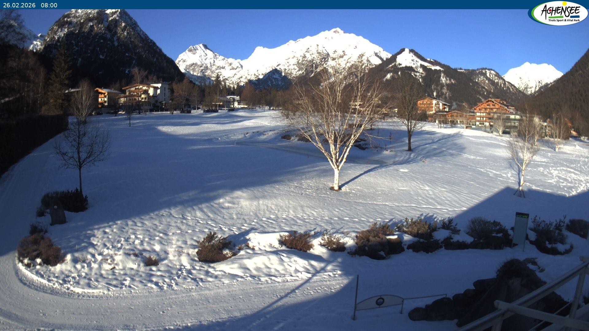 Archived webcam image showing Golfclub in Pertisau on 26 Feb 2026 at 08:06 07:00