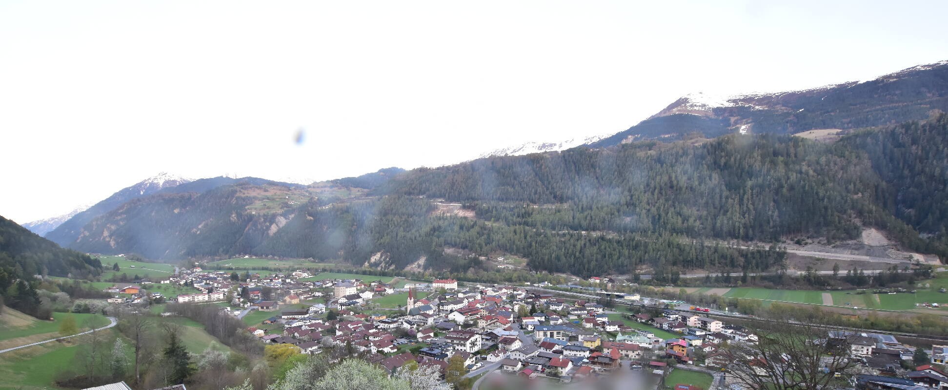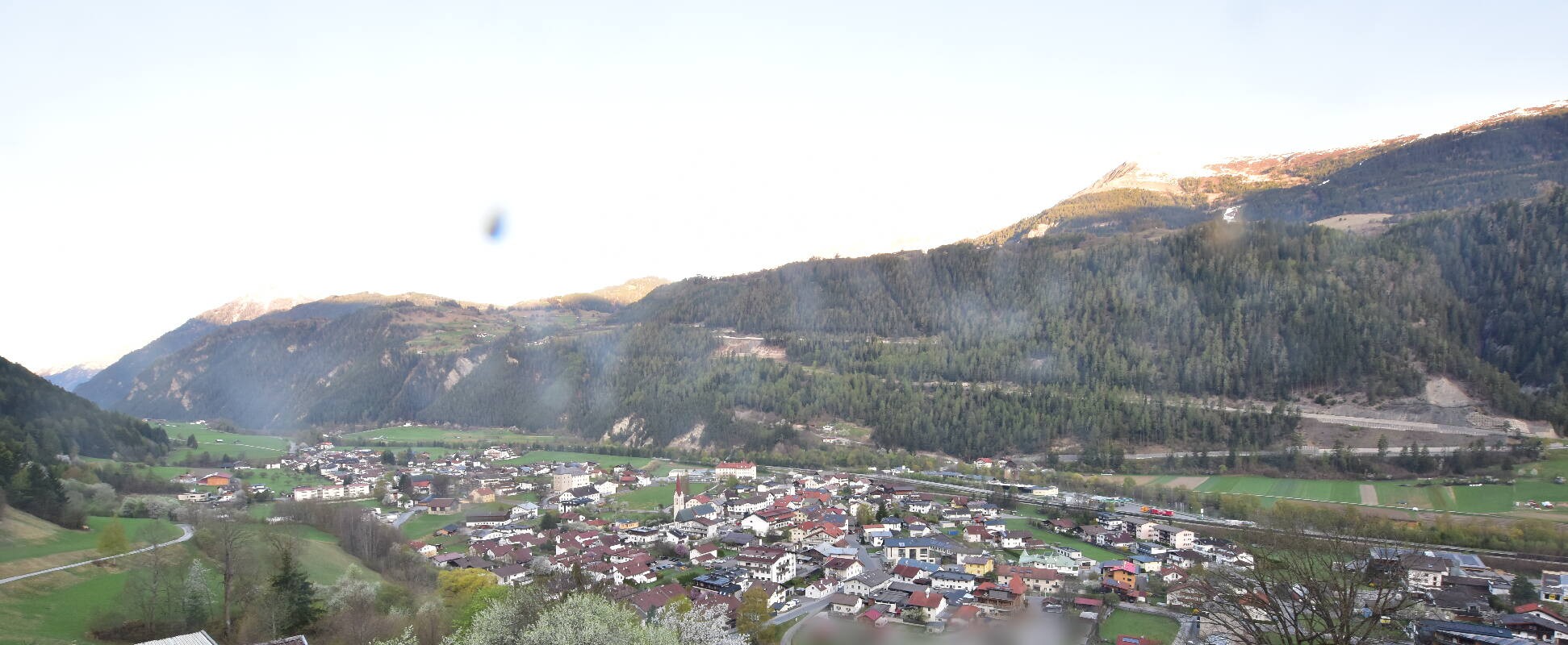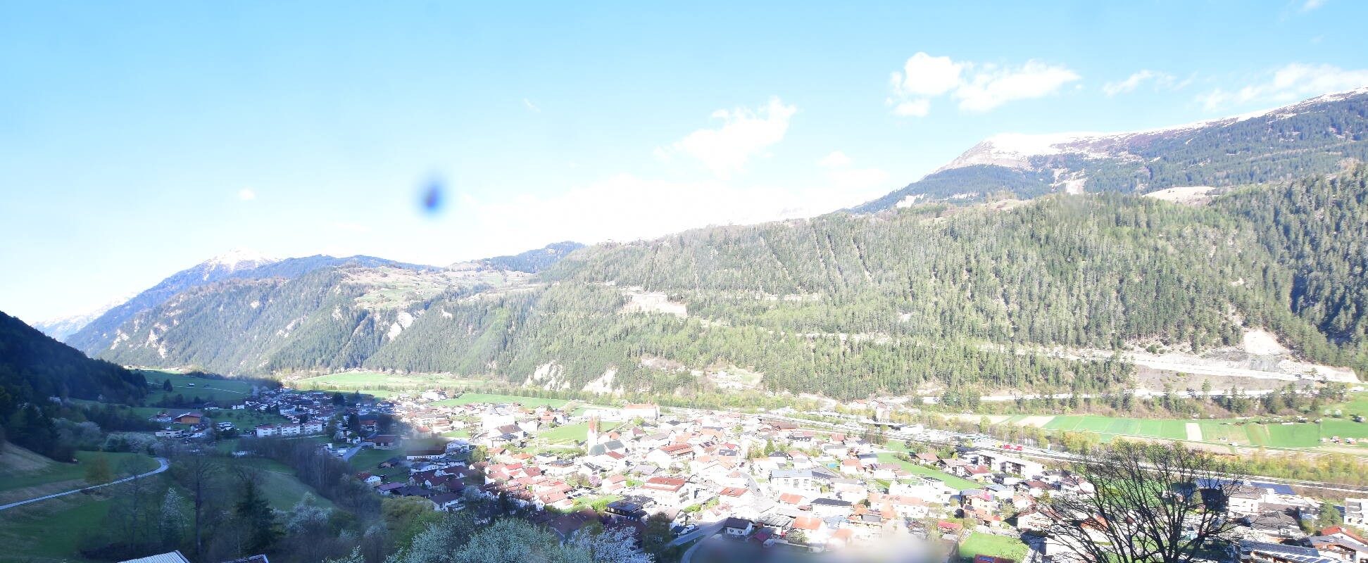 Enjoy the view over Ried im Oberinntal. This is where the Fendels ski area is located. The camera also shows the road up to the Serfaus-Fiss-Ladis ski area.