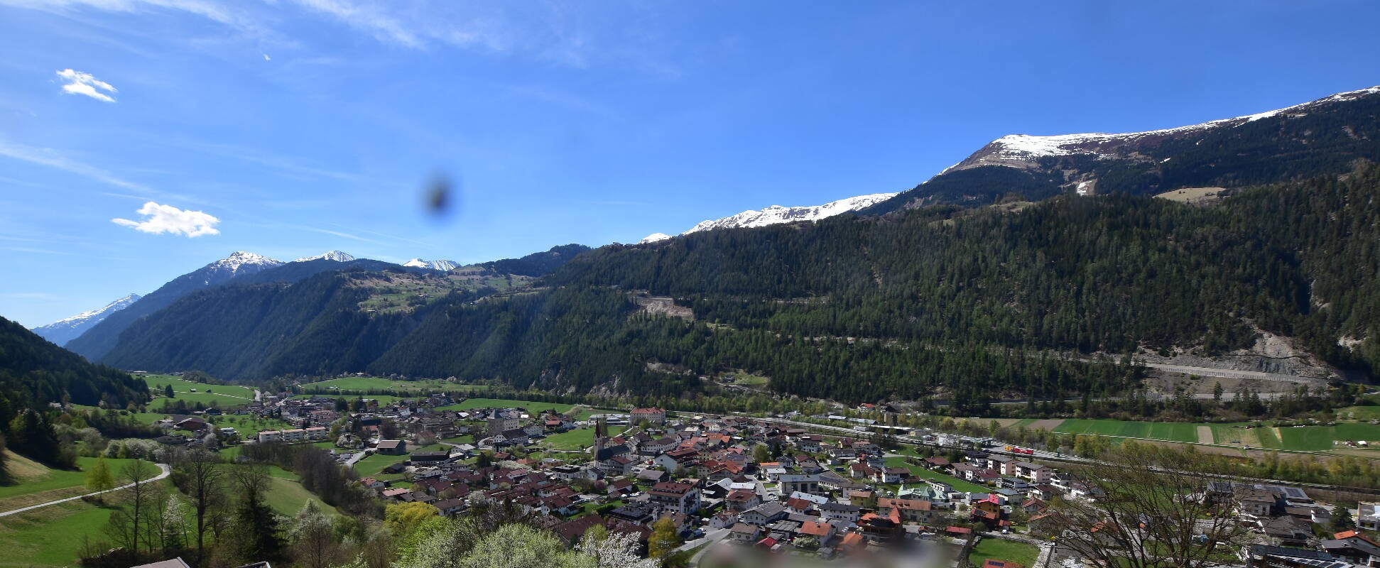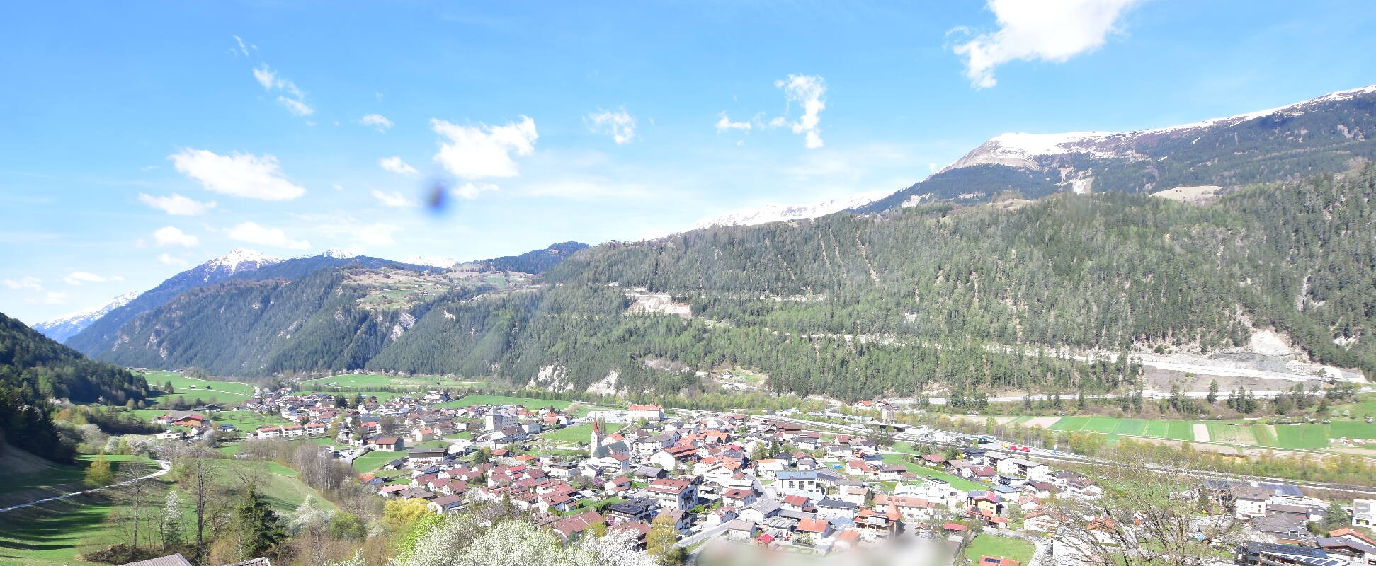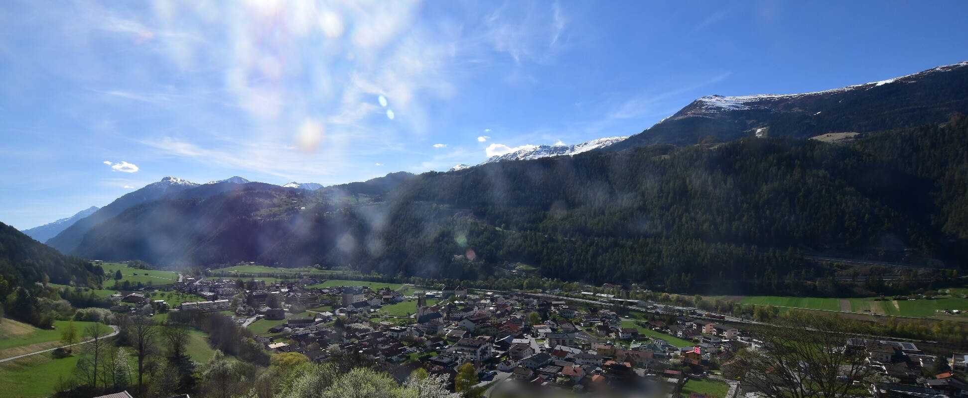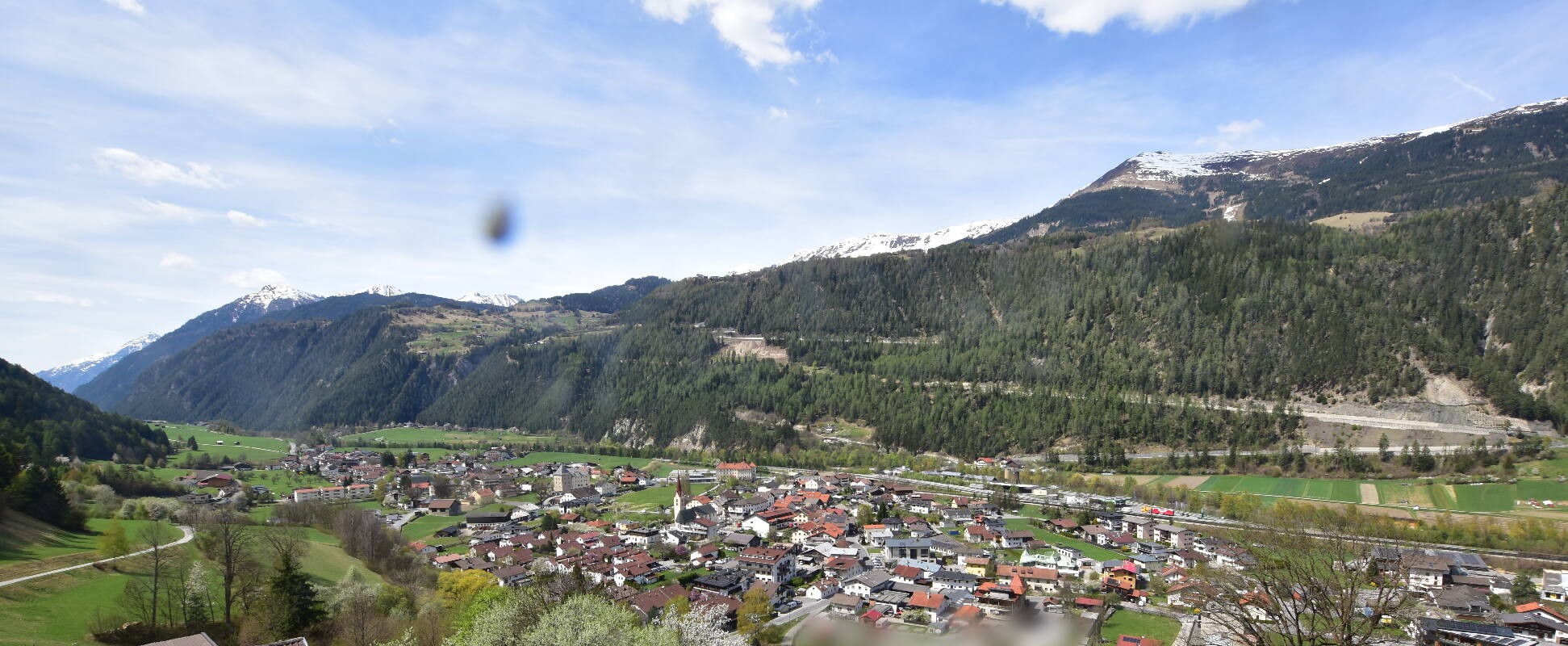 Enjoy the view over Ried im Oberinntal. This is where the Fendels ski area is located. The camera also shows the road up to the Serfaus-Fiss-Ladis ski area.