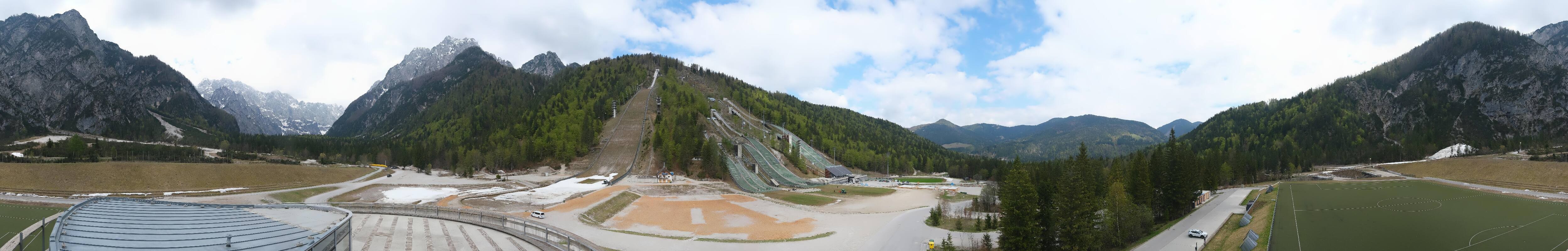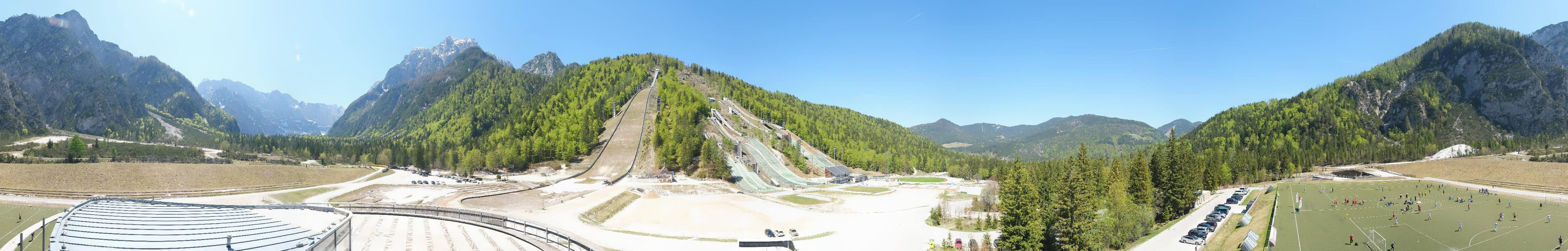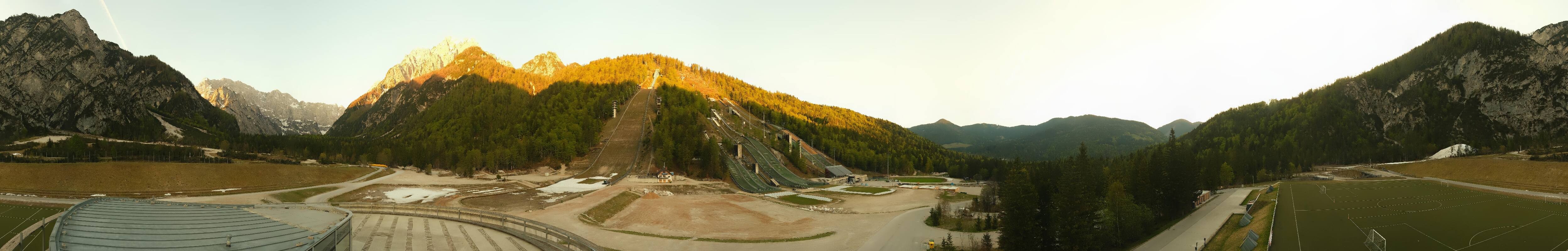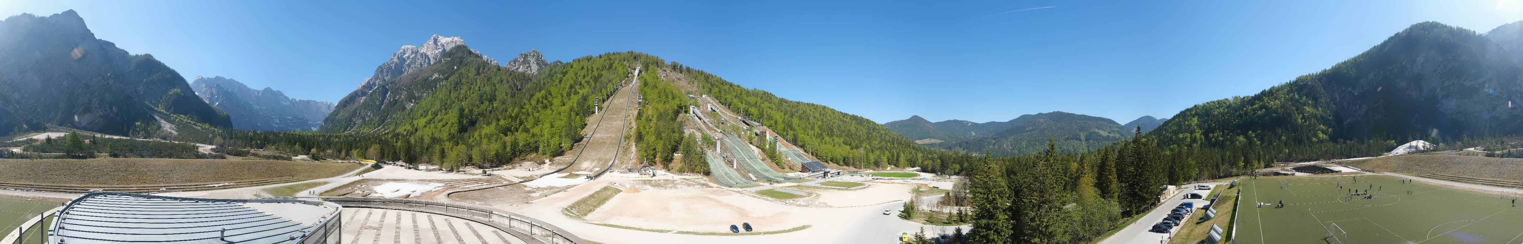 You can see the Planica Nordic Center near Kranjska Gora. The webcam is located on the building of the wind tunnel and shows among other things the ski jumps.