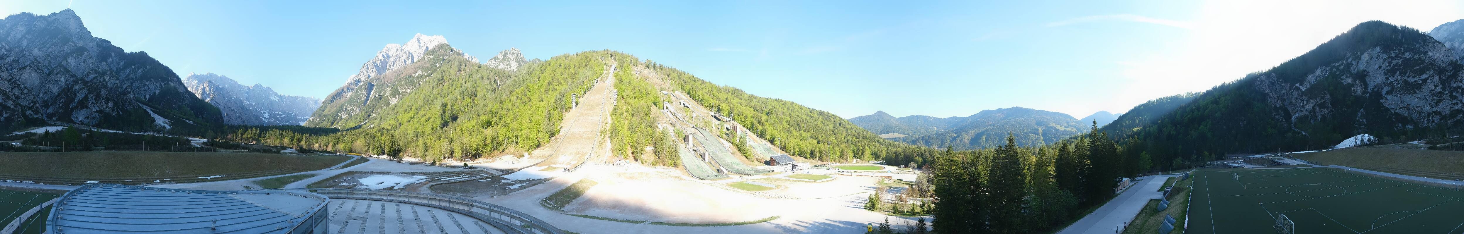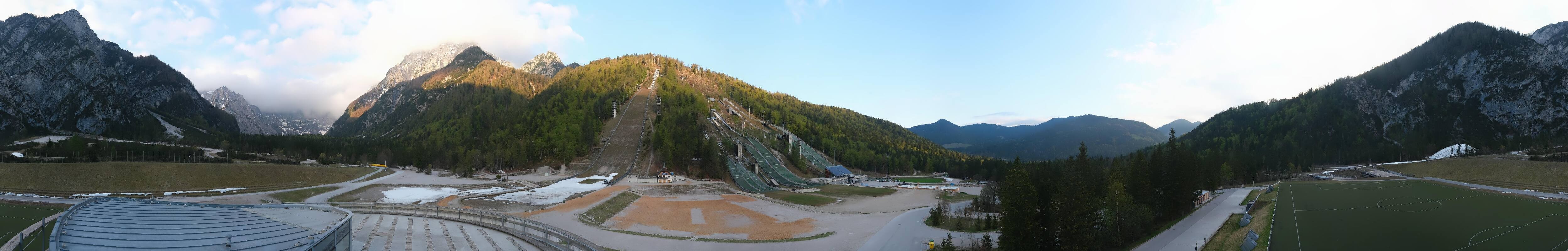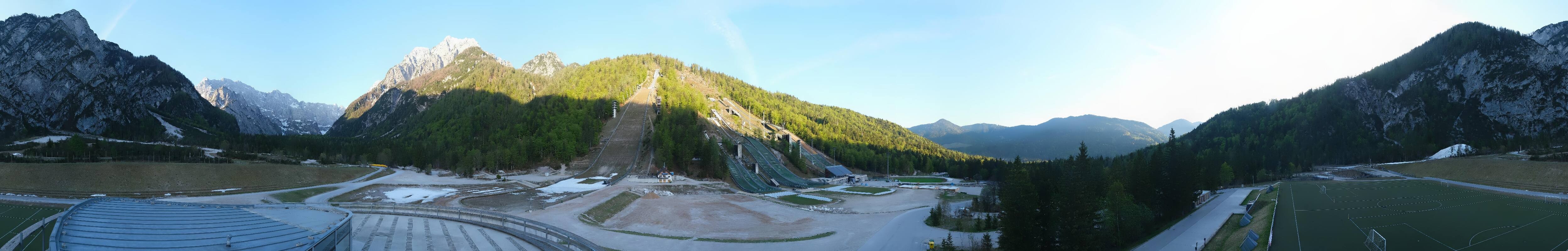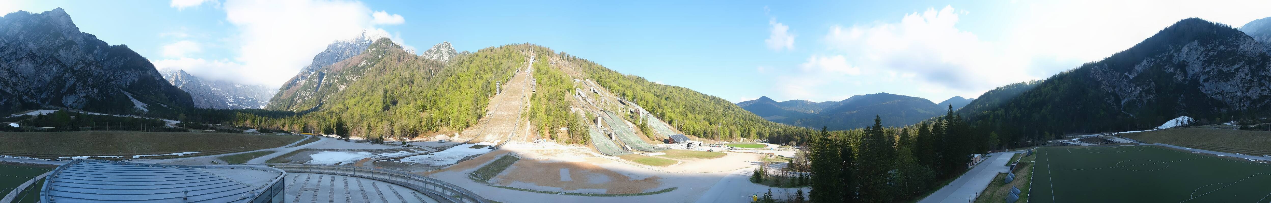 You can see the Planica Nordic Center near Kranjska Gora. The webcam is located on the building of the wind tunnel and shows among other things the ski jumps.
