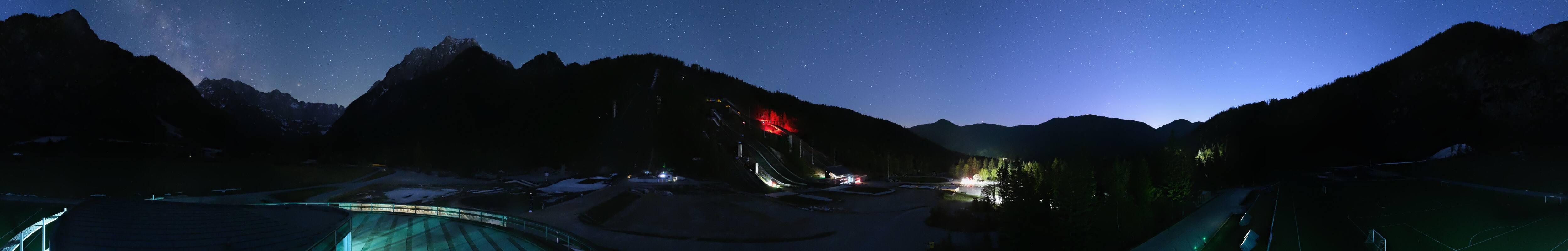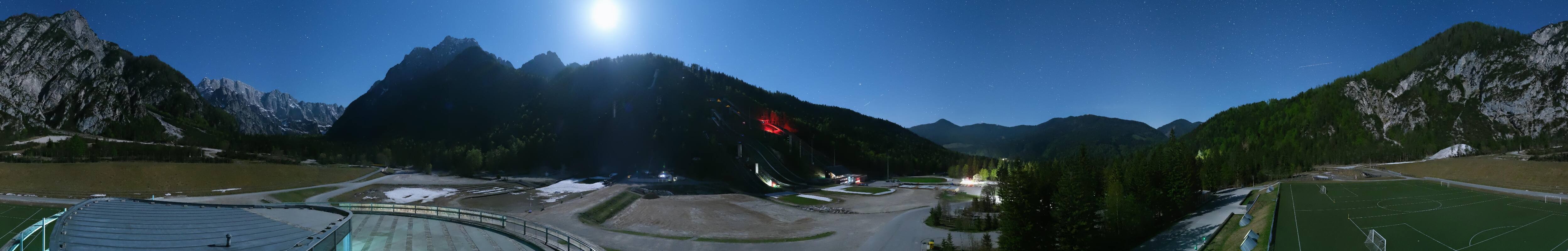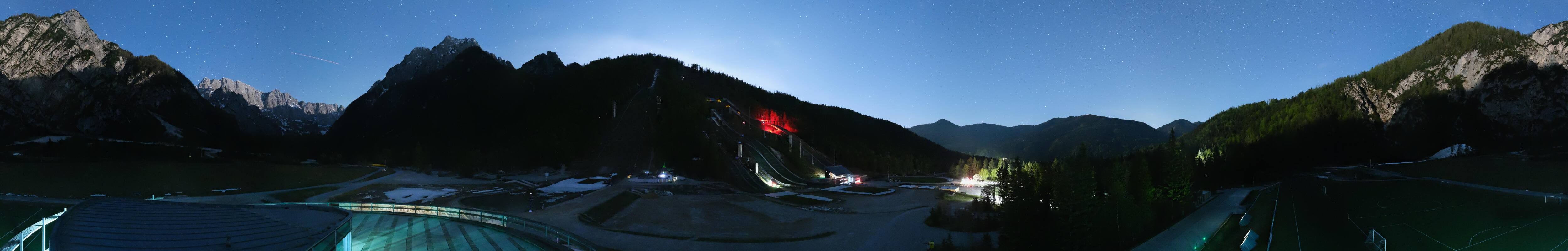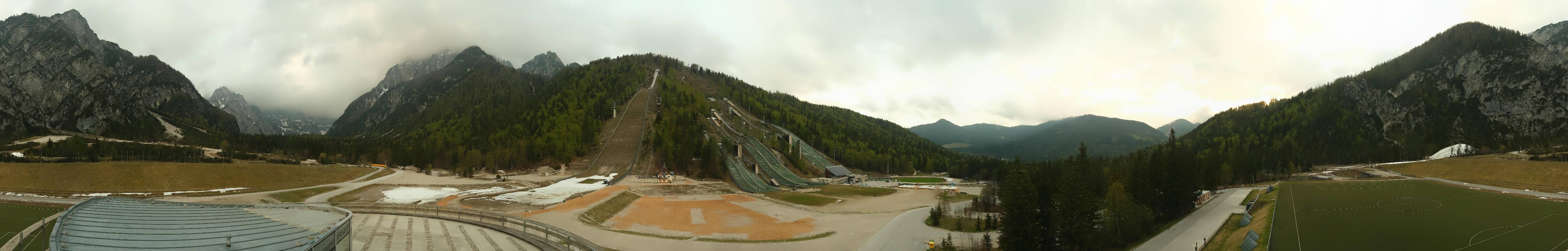 You can see the Planica Nordic Center near Kranjska Gora. The webcam is located on the building of the wind tunnel and shows among other things the ski jumps.