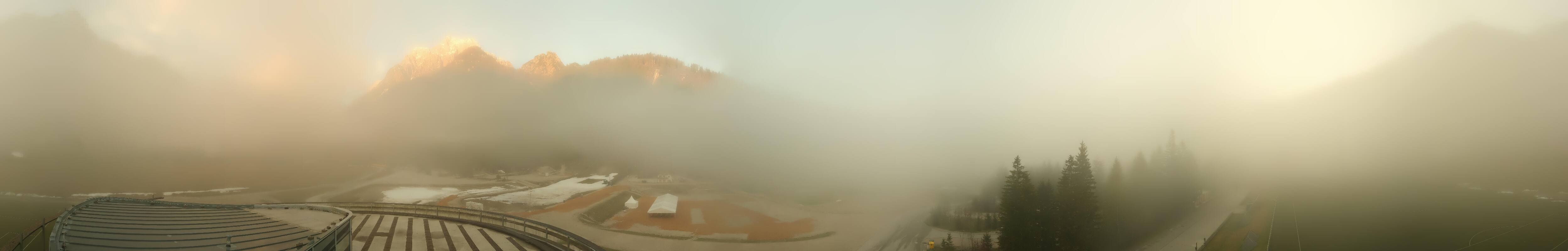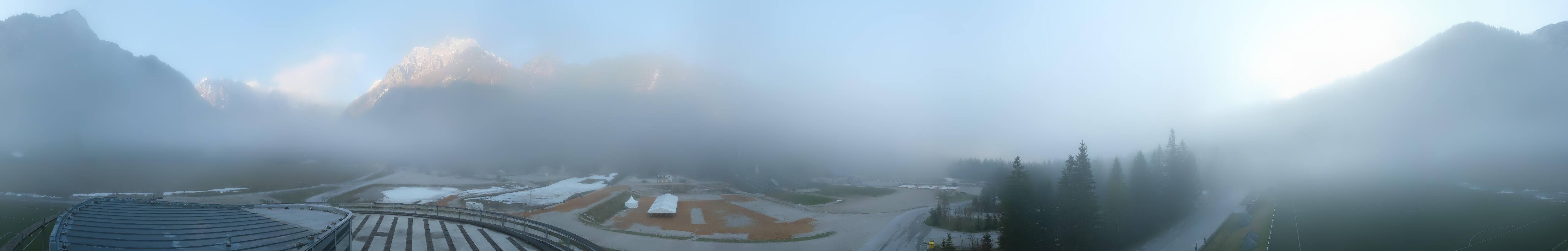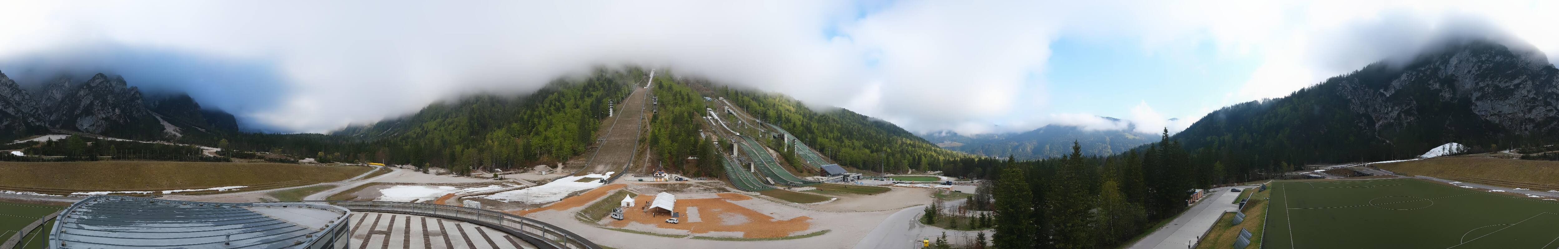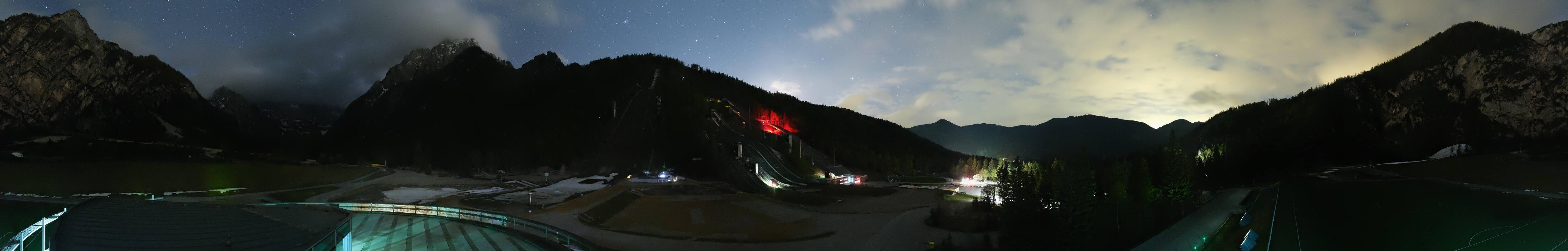 You can see the Planica Nordic Center near Kranjska Gora. The webcam is located on the building of the wind tunnel and shows among other things the ski jumps.