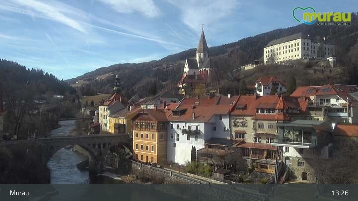 Archived webcam image showing Murau - Town on 26 Feb 2026 at 13:31 12:00