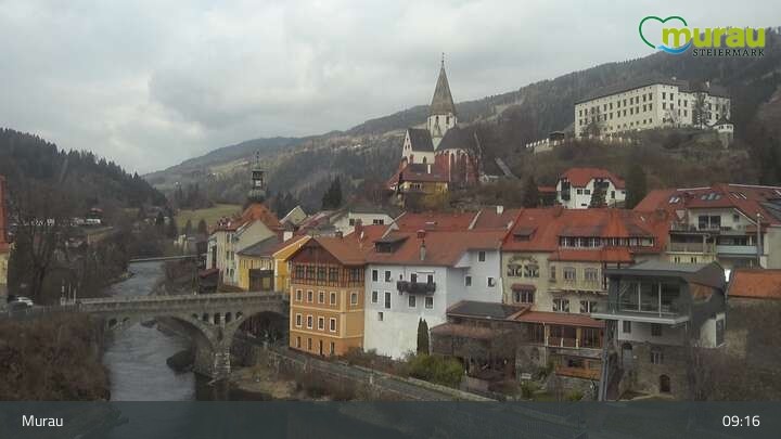 Archived webcam image showing Murau - Town on 16 Mar 2026 at 09:20 08:00