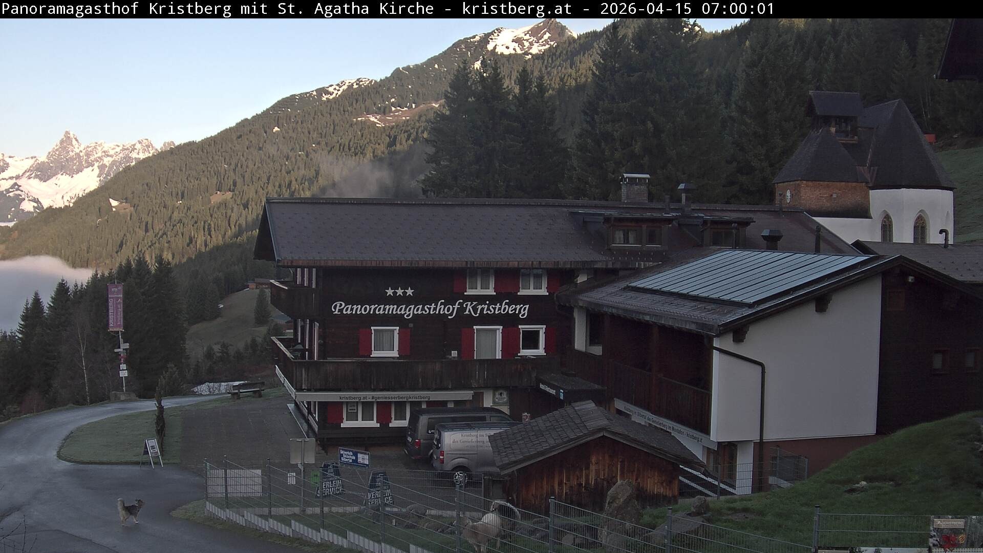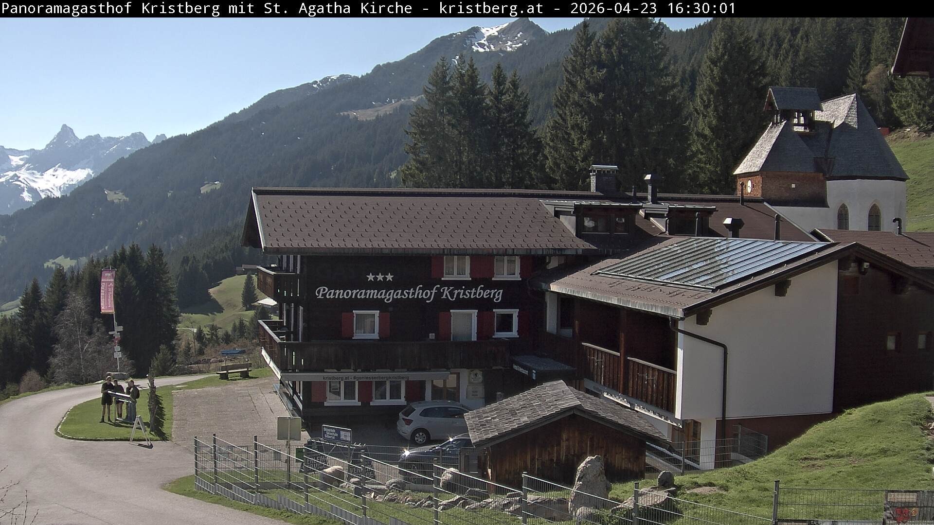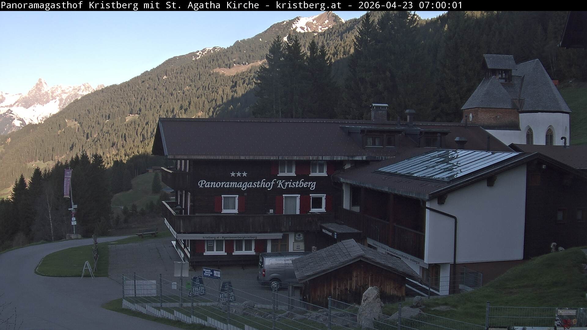 The webcam offers the view at restaurant "Panoramagasthof Kristberg" in ski resort Kristberg-Silbertal, Austria. The restaurant is located at the top station of cable car Kristberg and is popular for its regional cuisine. It offers a playground for children and a lovely terrace, where you can enjoy the view towards Rätikon mountainchain.