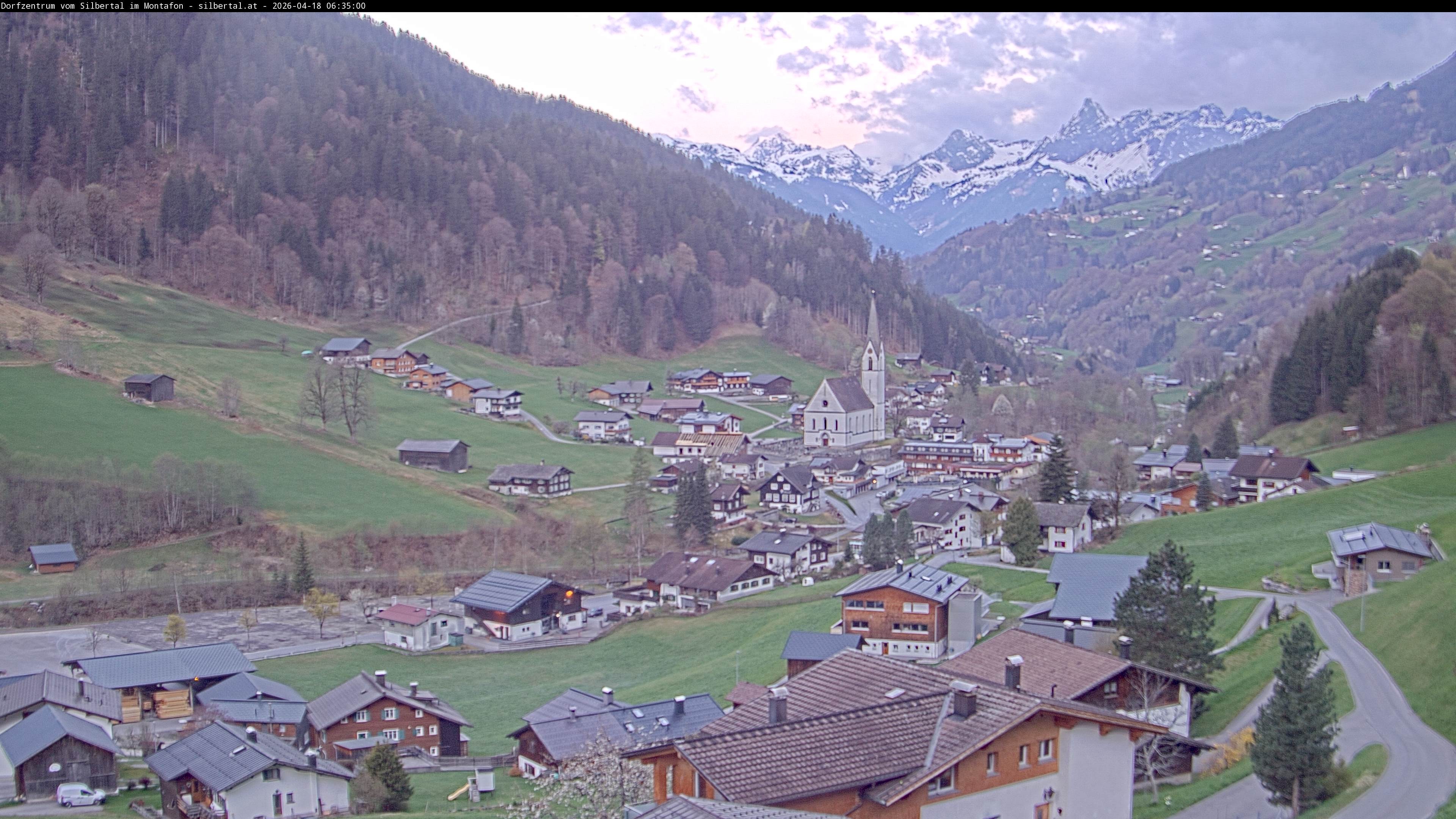 Archived webcam image showing Vorarlberg: Silbertal village on 18 Apr 2026 at 06:05 05:00