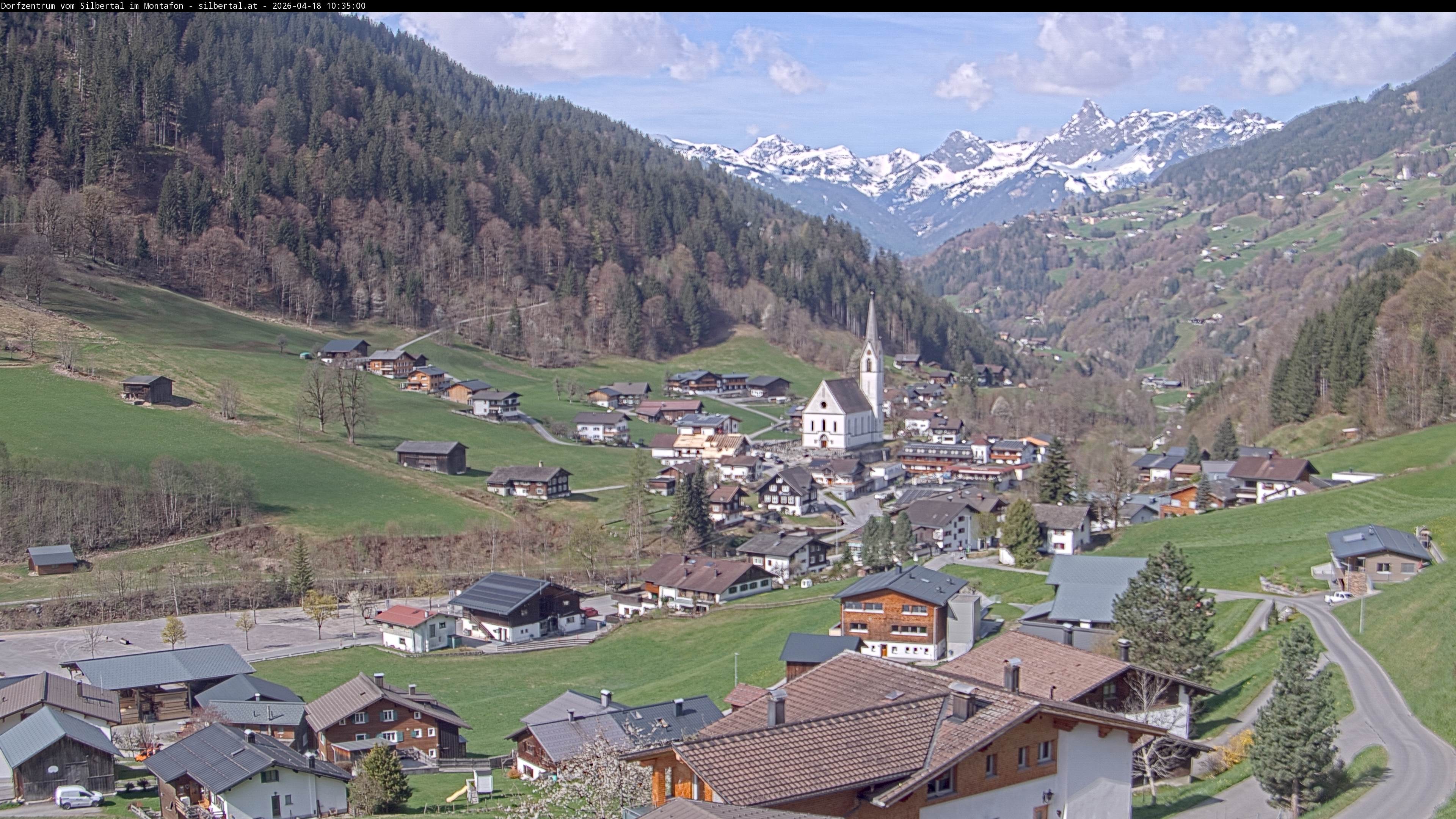 Archived webcam image showing Vorarlberg: Silbertal village on 18 Apr 2026 at 10:05 09:00