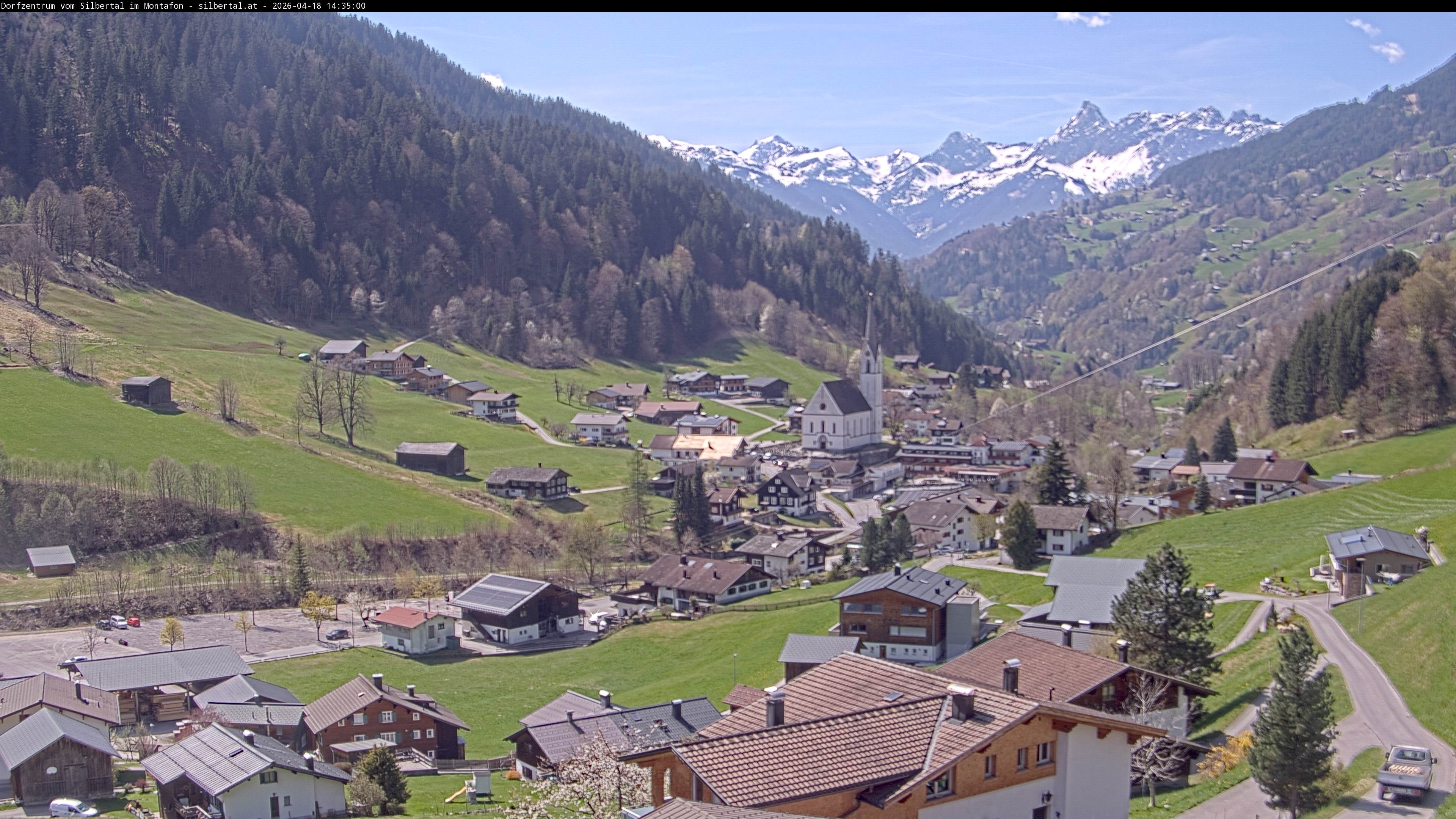 Archived webcam image showing Vorarlberg: Silbertal village on 18 Apr 2026 at 14:05 Latest