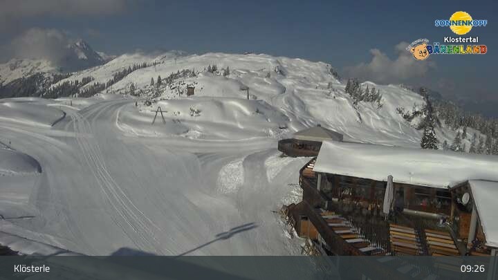Archiviertes Webcam Bild: Bergstation Sonnenkopf - Klösterle am 03.04.2026 um 09:07 Uhr 09:00