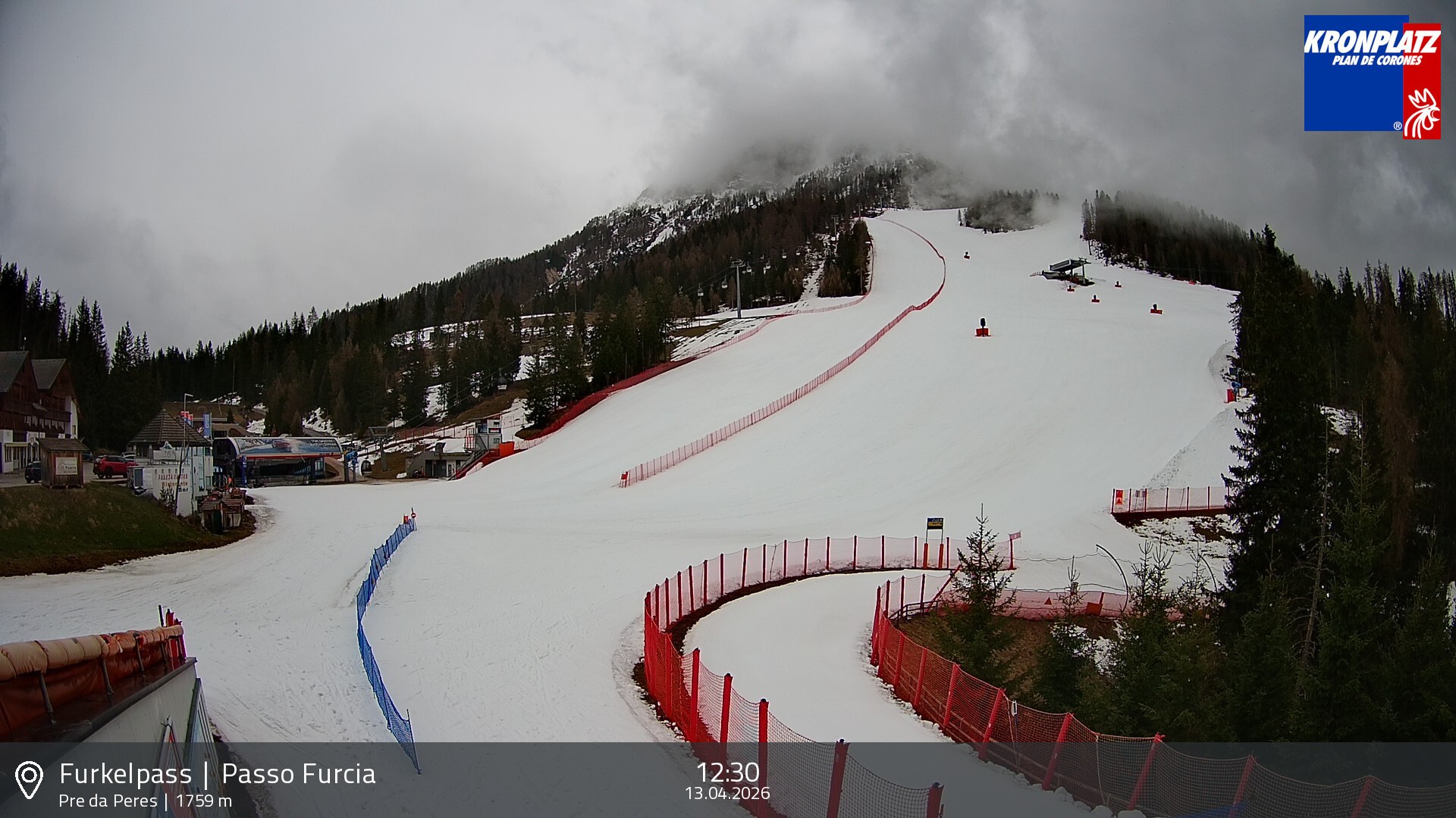 Archived webcam image showing Base station Passo Furcia on 13 Apr 2026 at 12:28 Latest
