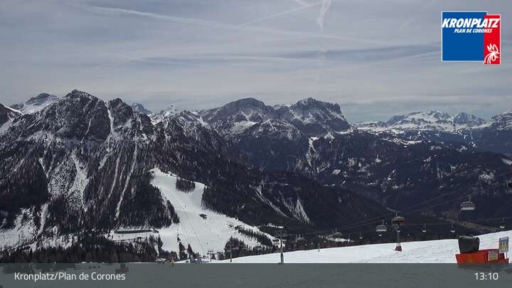 Archived webcam image showing Plan De Corones (2275m) on 9 Apr 2026 at 13:22 Latest