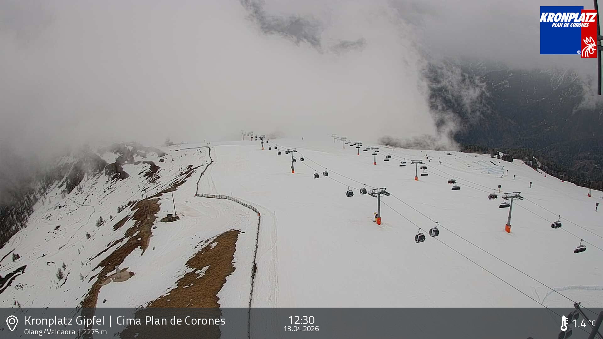 Archived webcam image showing Plan De Corones, Olang on 13 Apr 2026 at 12:25 Latest