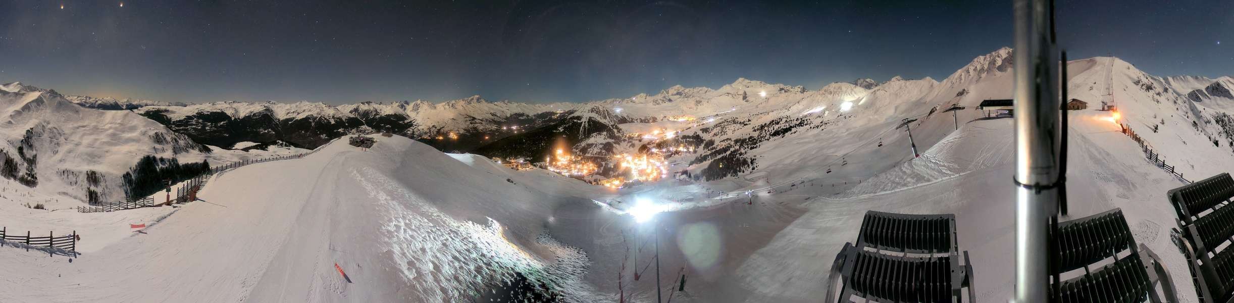 Webcam shows top station of Bécoin at French Ski Resort La Plagne.