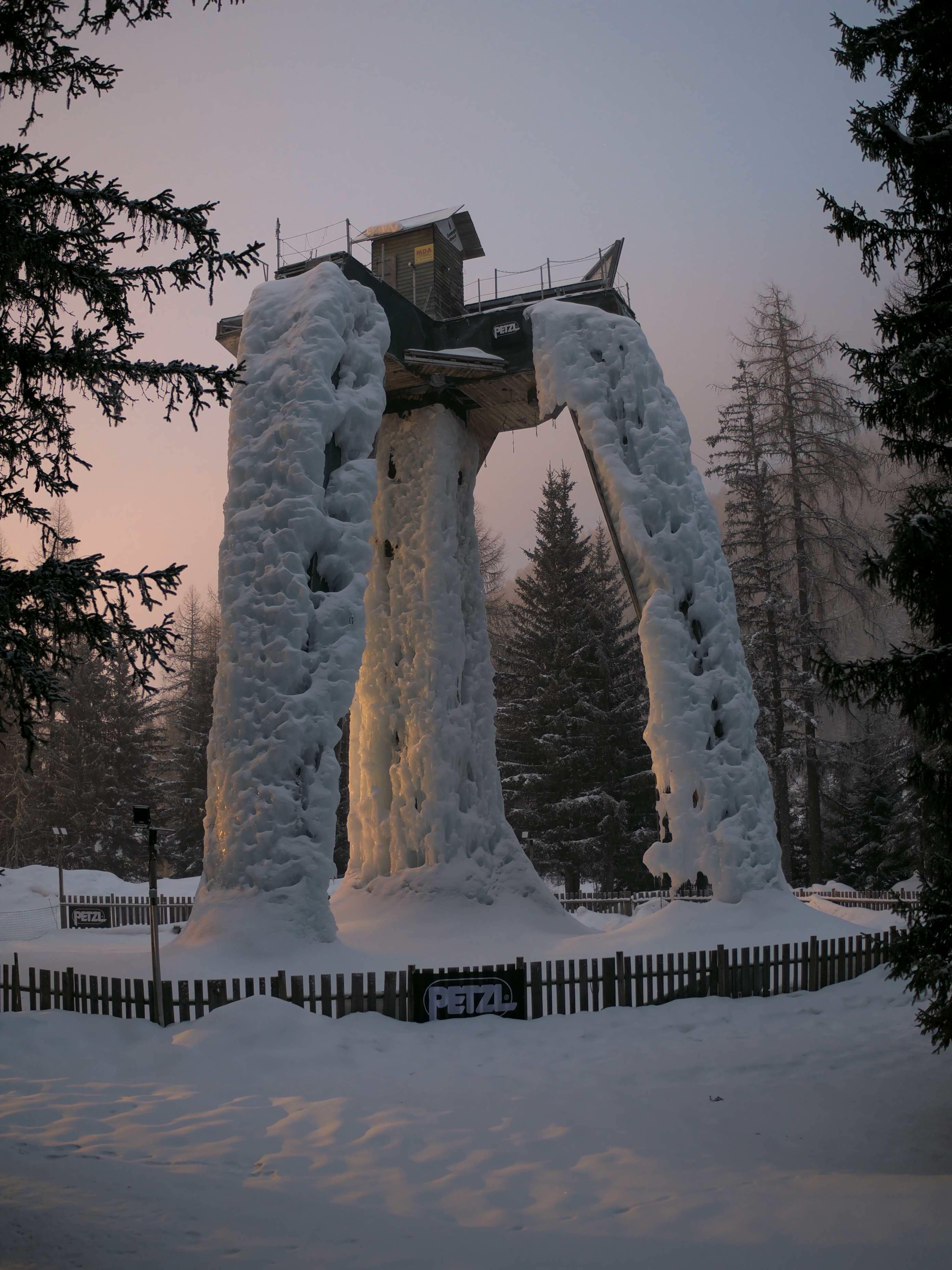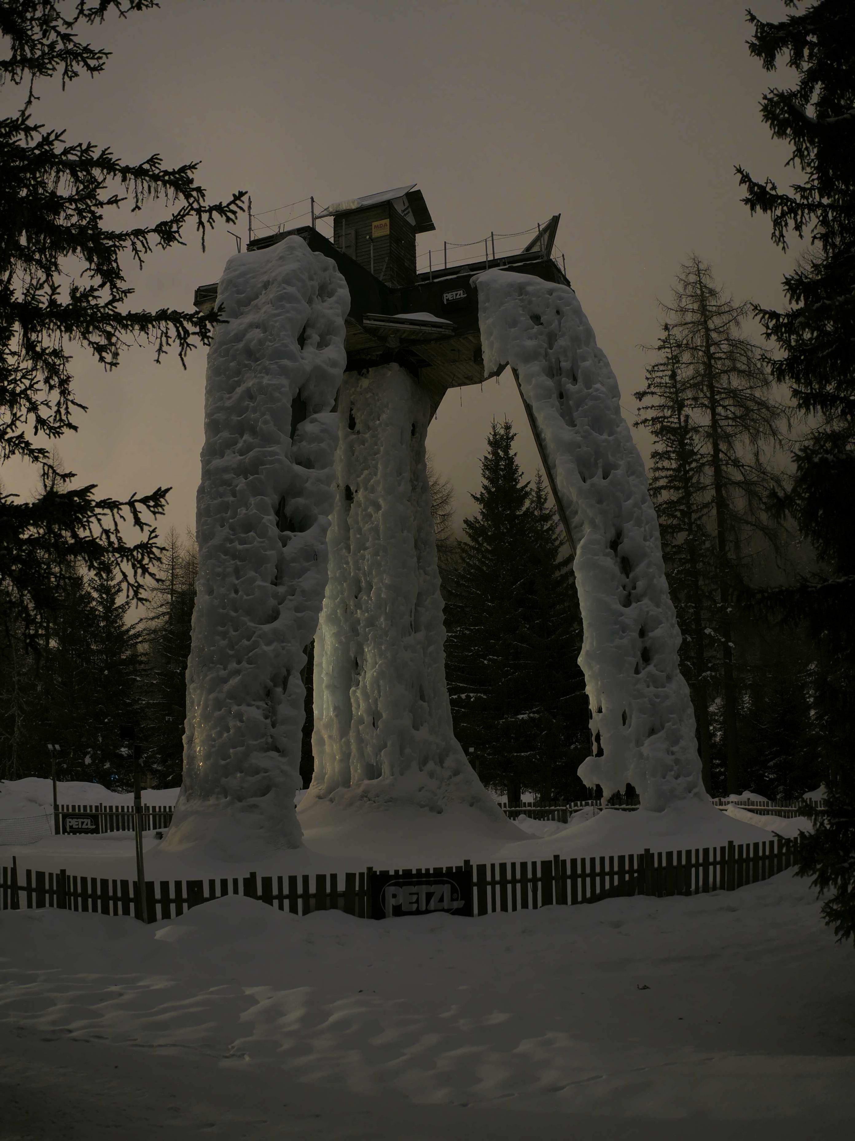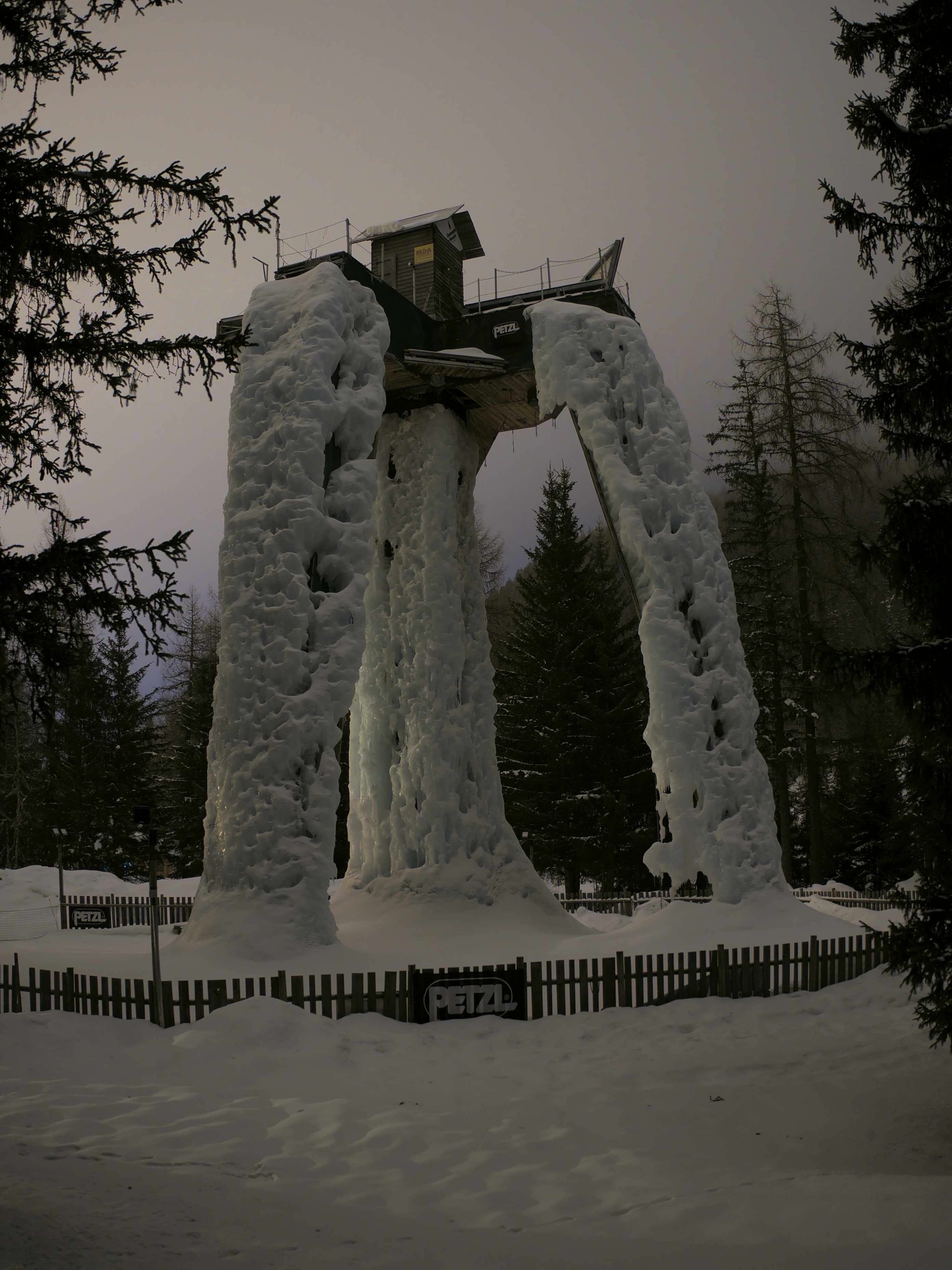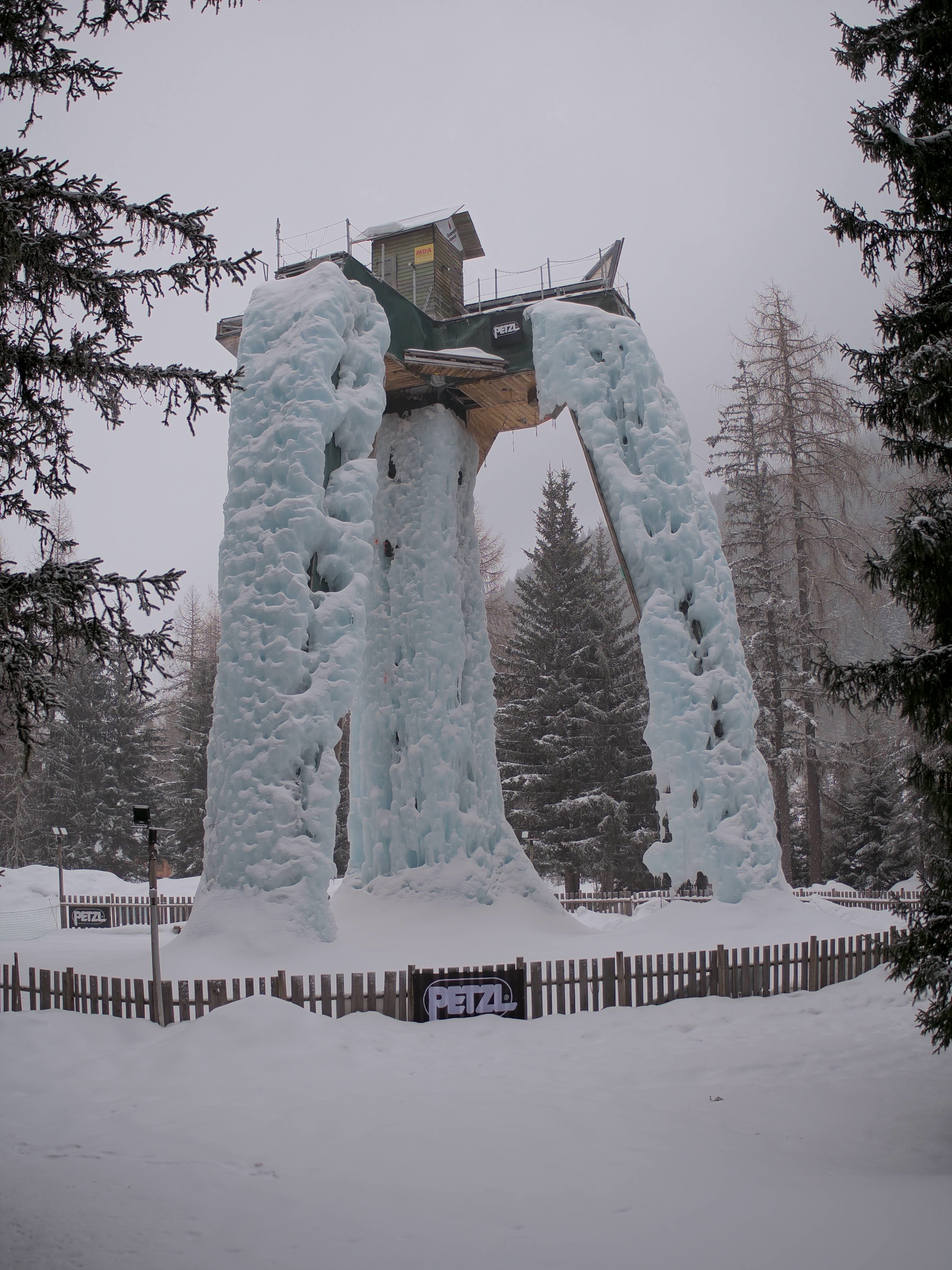 Webcam shows Tour de Glace in Champagny (France), where one can simulate climbing up a glacier.