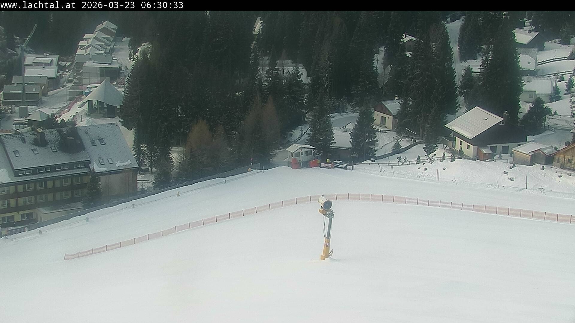 Have a look at the last meters of the Herbert slope and the kids area with a tow lift and a magic carpet at the base station in Lachtal.