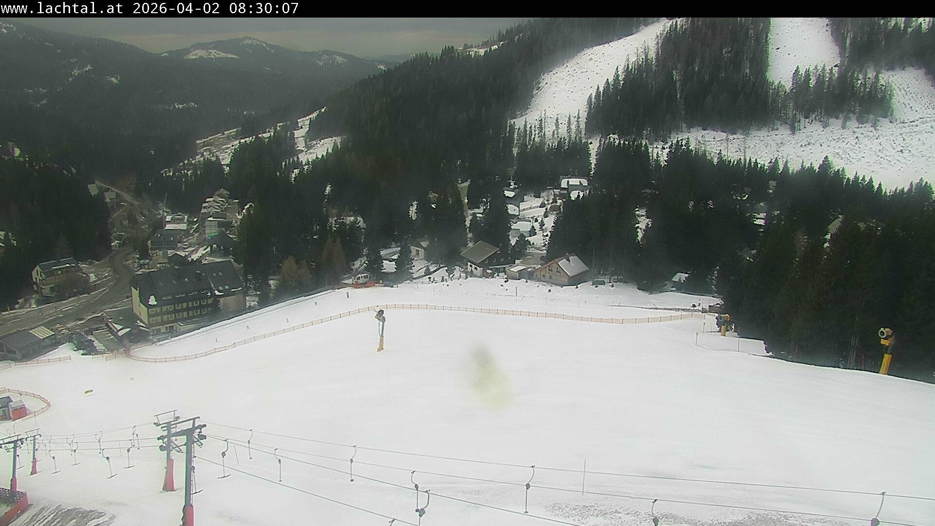 Archived webcam image showing Lower station in Lachtal Ski Resort on 2 Apr 2026 at 08:09 07:00