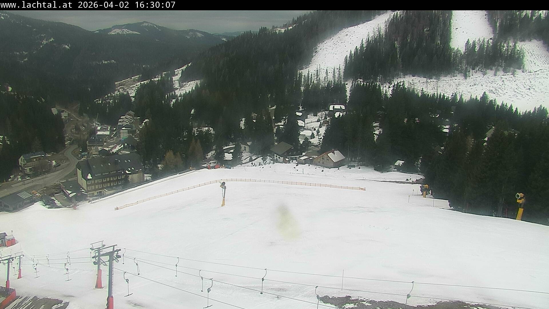 Archived webcam image showing Lower station in Lachtal Ski Resort on 2 Apr 2026 at 16:09 Latest