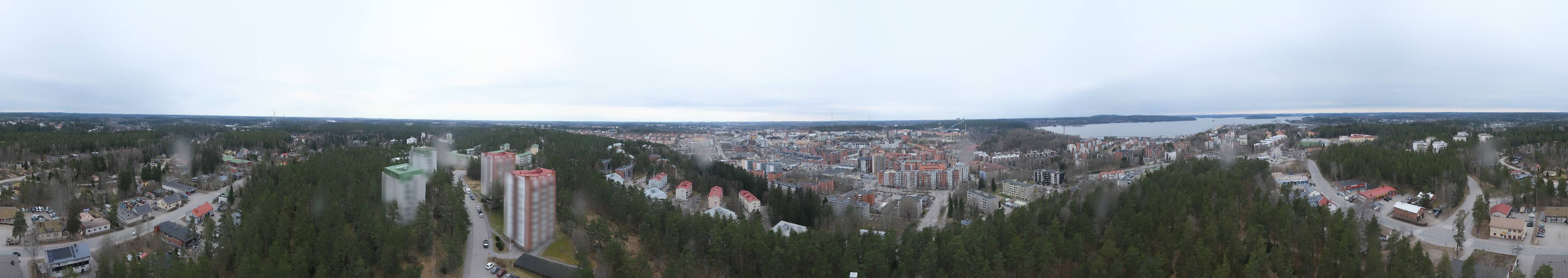 View from Mustankallion water tower over the Finnish "sports capital" Lahti and Lake Vesijärvi. In the background you can see the Salpausselkä ski jumping hills.