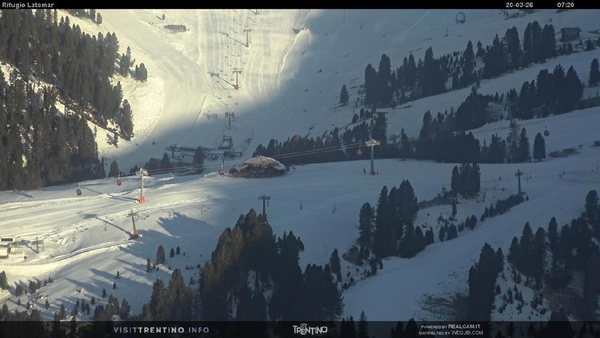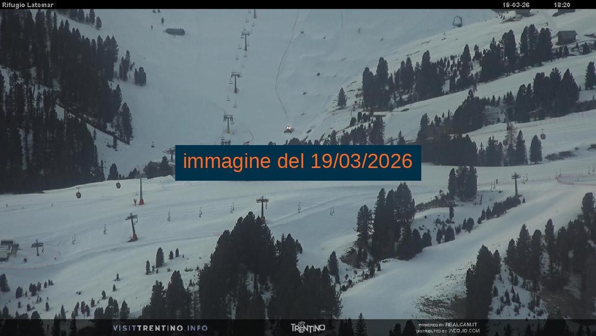 Archived webcam image showing Val di Fiemme, Rifugio Latemar on 20 Mar 2026 at 08:29 07:00