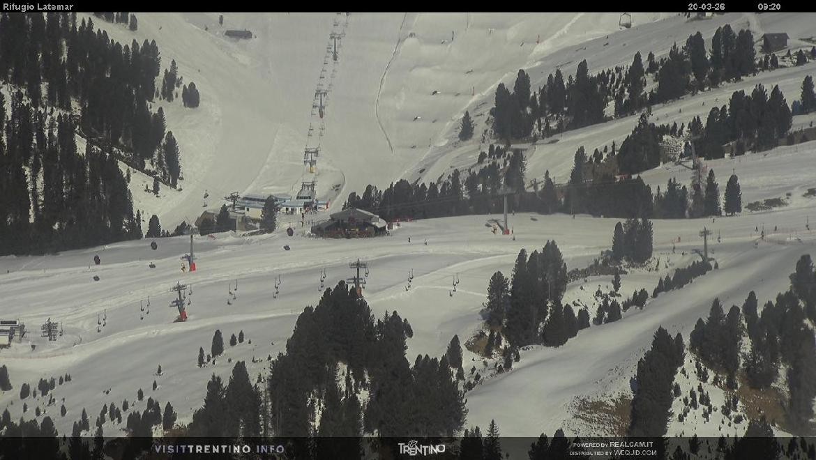 Archived webcam image showing Val di Fiemme, Rifugio Latemar on 20 Mar 2026 at 10:29 09:00
