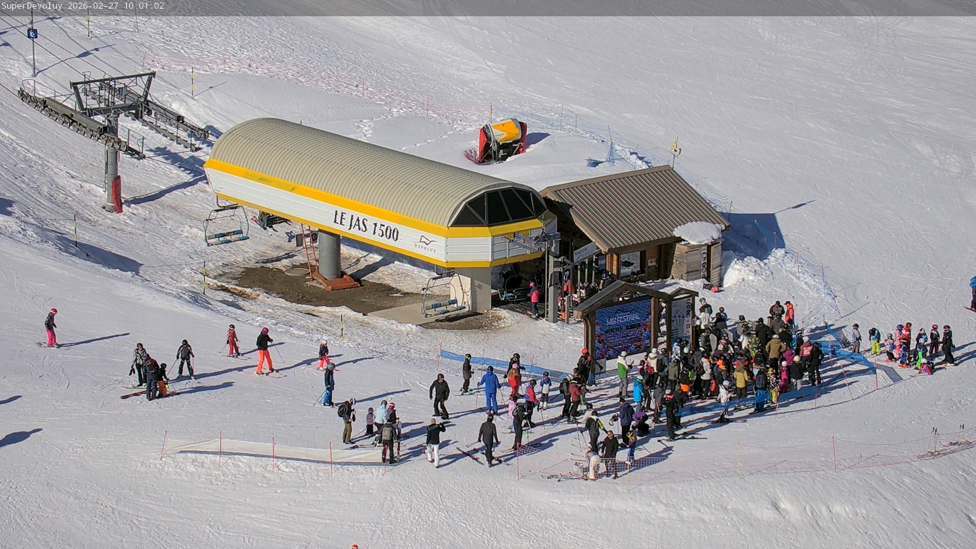 The webcam shows the summit of "Pic de Bure" mountain in the popular french ski area Superdévoluy.