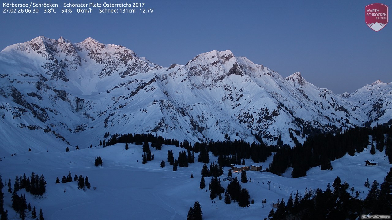 This webcam is located in the middle of the Lechtal Alps. In the picture you can see the Körbersee on the left and the Berghotel Körbersee on the right.