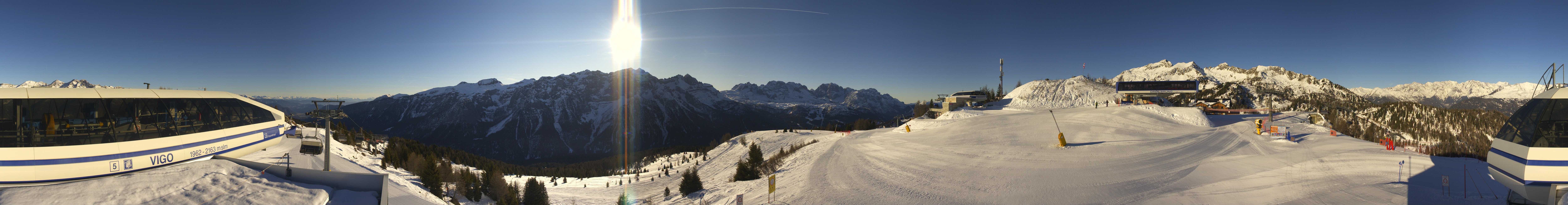 This 360 degree camera is located at Mt. Vigo in the ski area Folgarida Marilleva and shows the top stations of the chair lifts Vigo, Orso Bruno and Malghette.