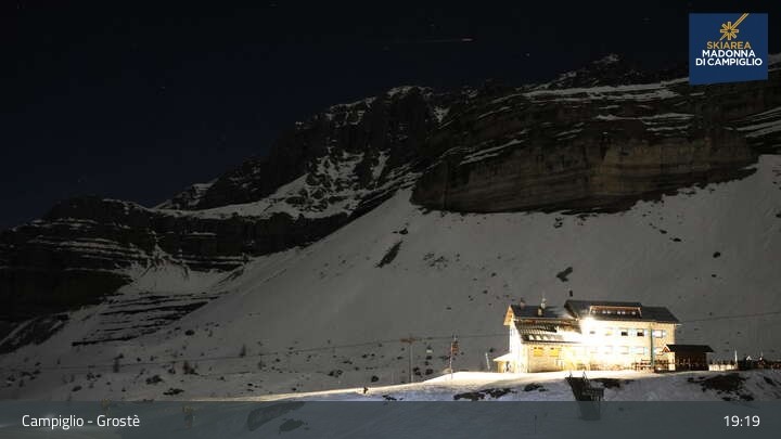 Archived webcam image showing Madonna di Campiglio - Grostè Base Station on 26 Feb 2026 at 19:13 Latest