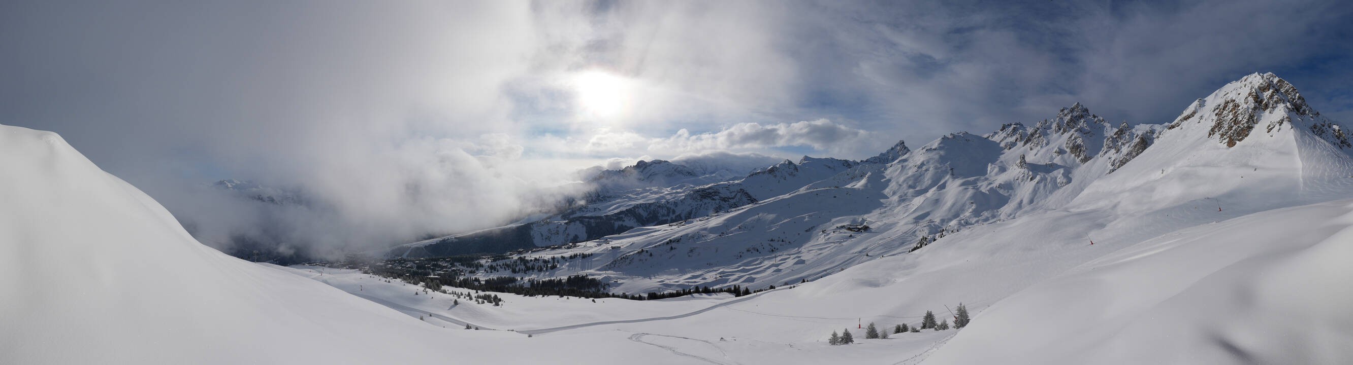 Beautiful view from Chenus mountain in Courchevel ski resort