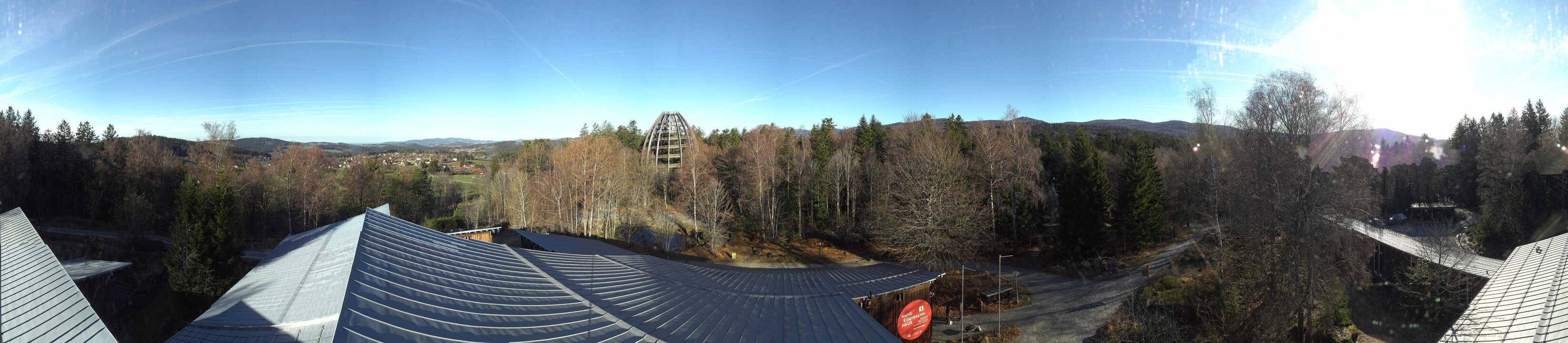The webcam is located on the visitor center Hans-Eisemann-Haus and looks at the tree top walk near Neuschönau in the Bavarian Forest. You can also see the lookout tower, which is more than 40 meters high.