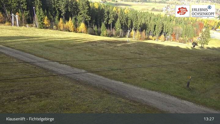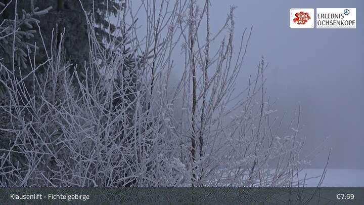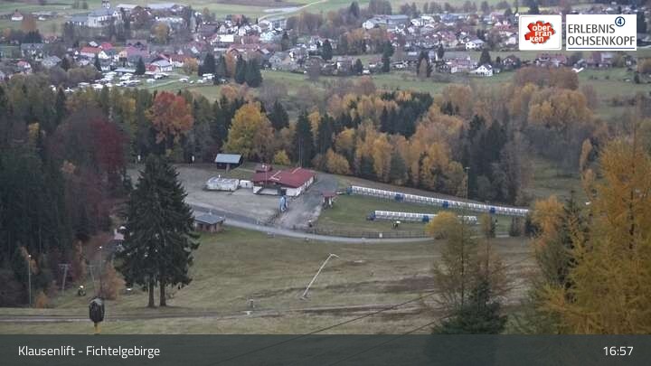 The webcam is located at the Klausen lifts in the Fichtelgebirge and looks over Mehlmeisel to Schneeberg and Ochsenkopf.