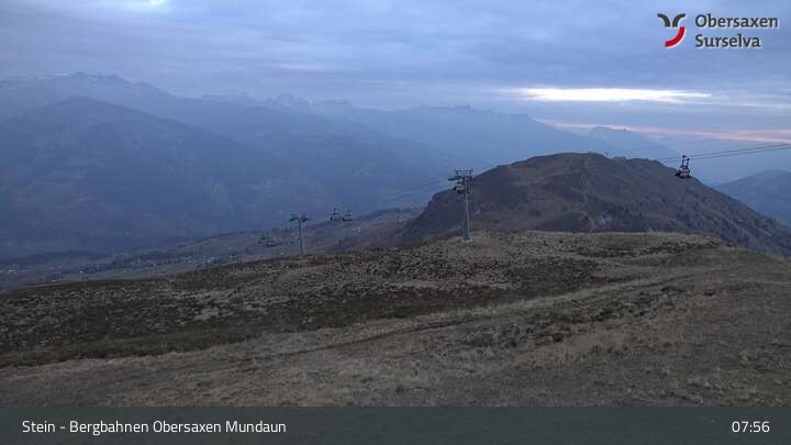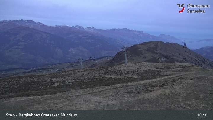 The webcam is located at the Untermatt top station in the Swiss ski resort of Obersaxen Mundaun. Skiers and snowboarders find blue and red marked runs here.