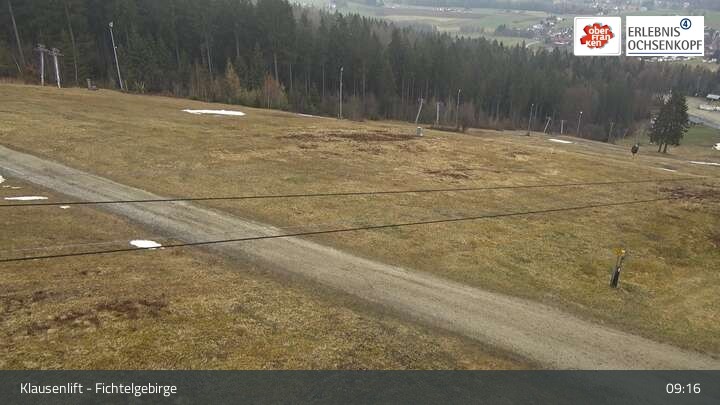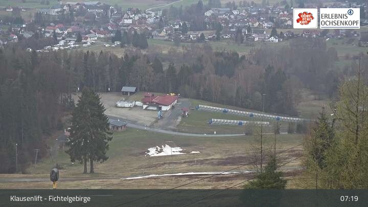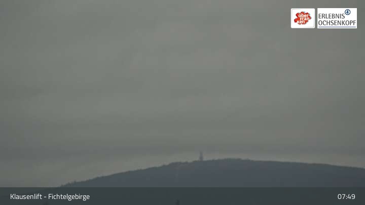The webcam is located at the Klausen lifts in the Fichtelgebirge and looks over Mehlmeisel to Schneeberg and Ochsenkopf.