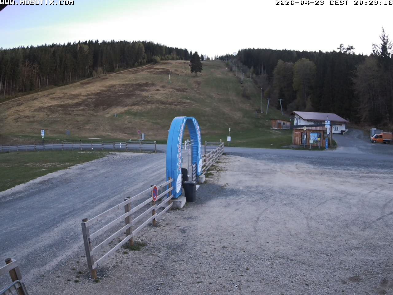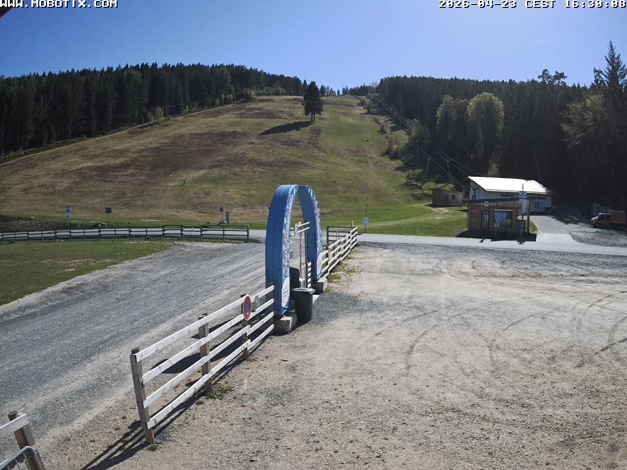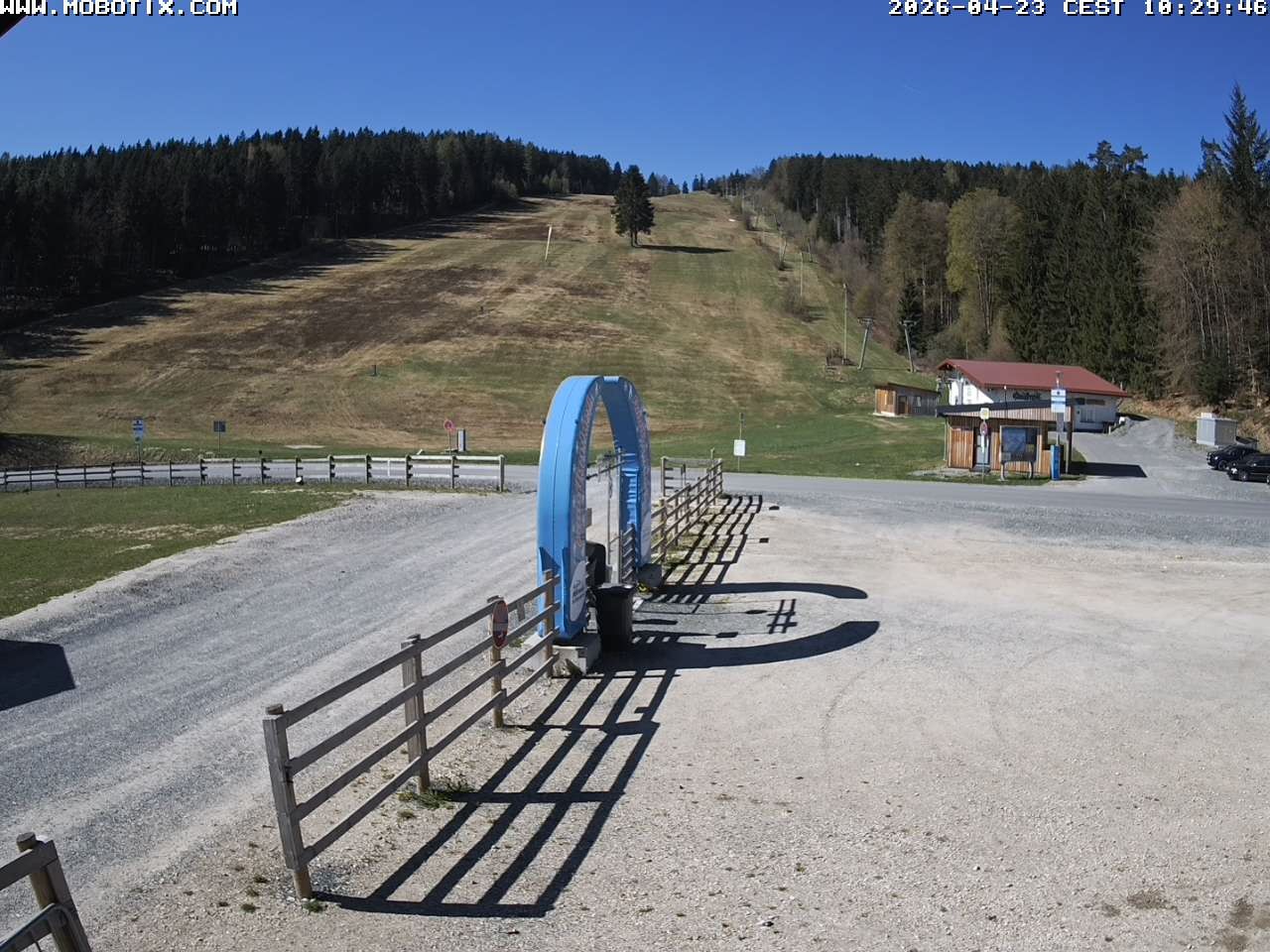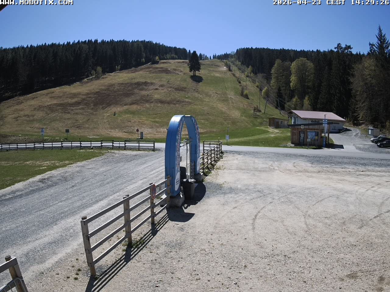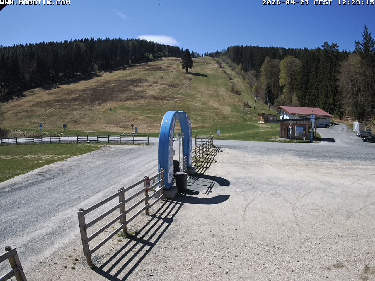 The webcam shows the parking area, two of the three ski lifts and the run at Mehlmeisel Klausenlifte.