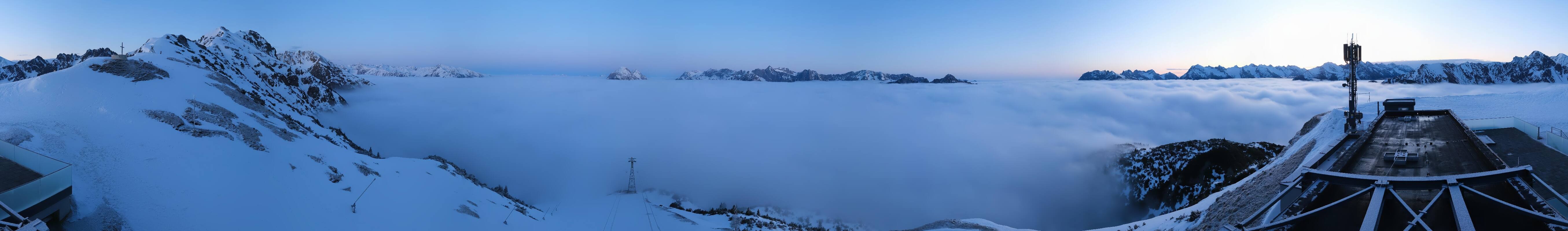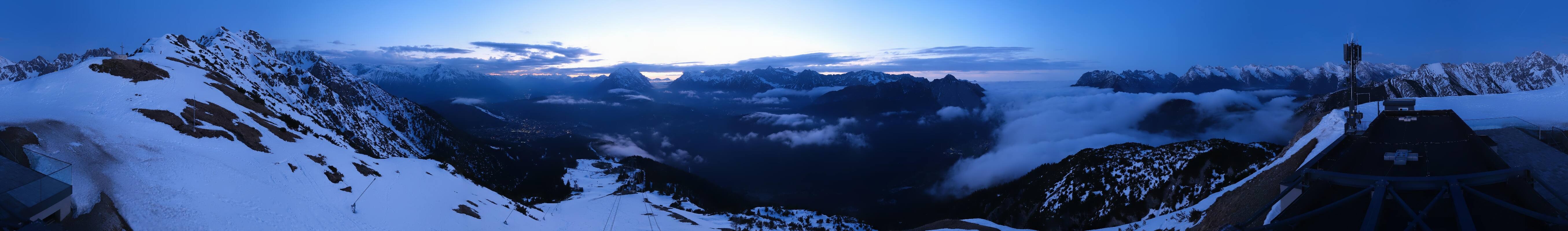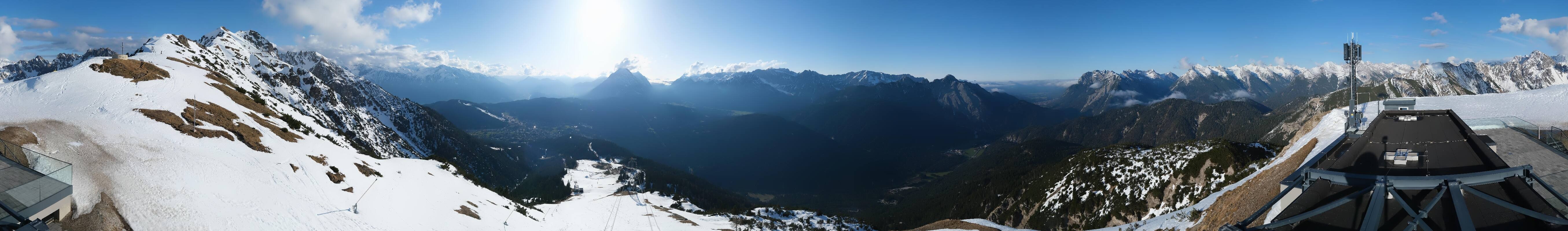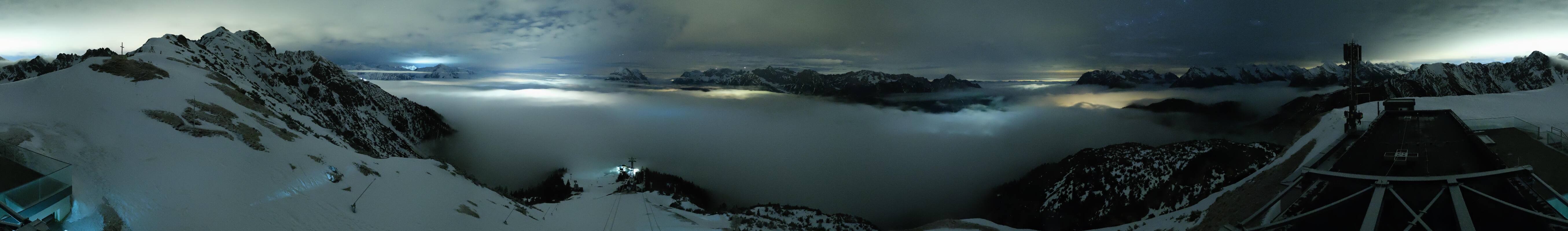 Enjoy the panoramic view from the top station at Seefelder Joch in the Rosshütte ski area down into the valley to Seefeld in Tyrol. In addition to the Seefelder Jochbahn, you can also see the Jochlift and the Rosshütten-Express chairlift.
