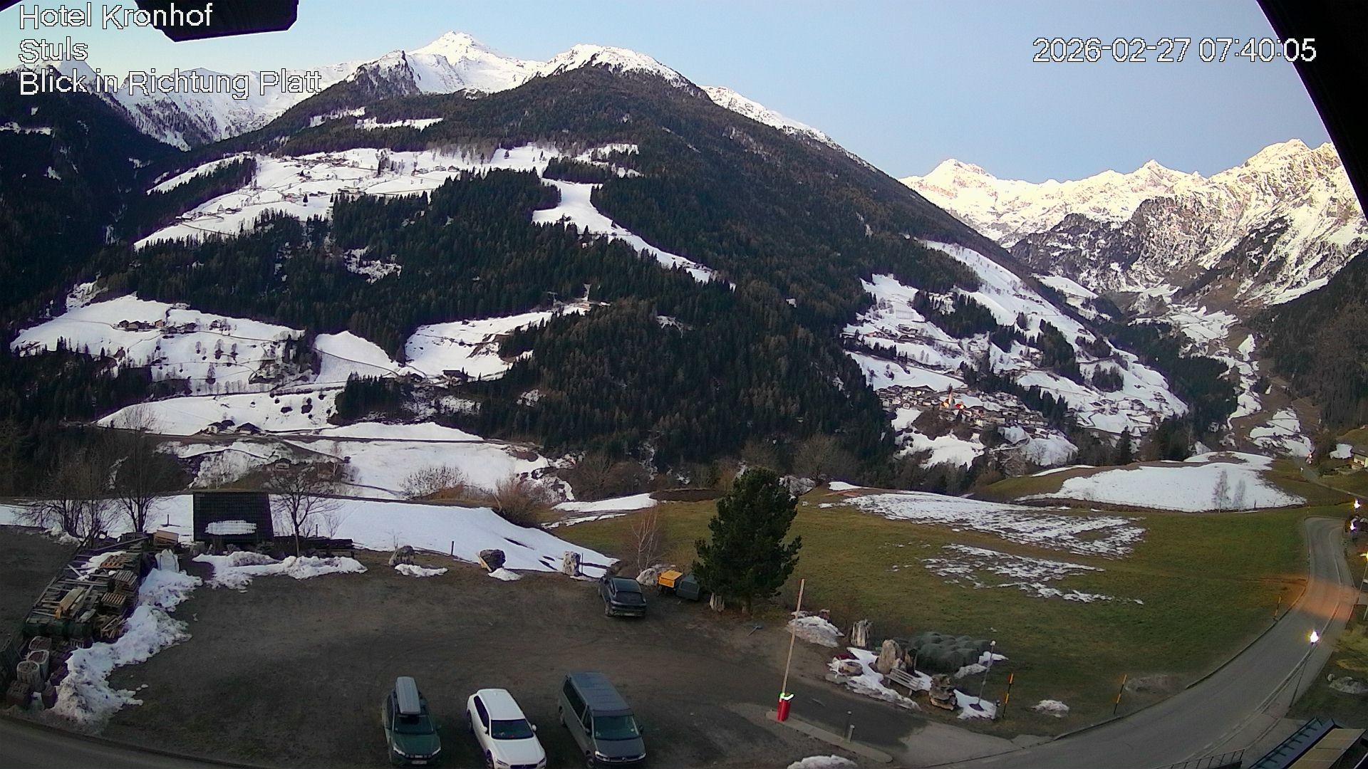 Archived webcam image showing Stuls in South Tyrol: Hotel Kronhof on 26 Feb 2026 at 06:20 05:00