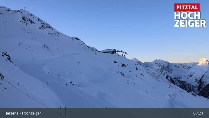 Archived webcam image showing Jerzens - Top station Hochzeiger 2.5 on 26 Feb 2026 at 07:54 06:00