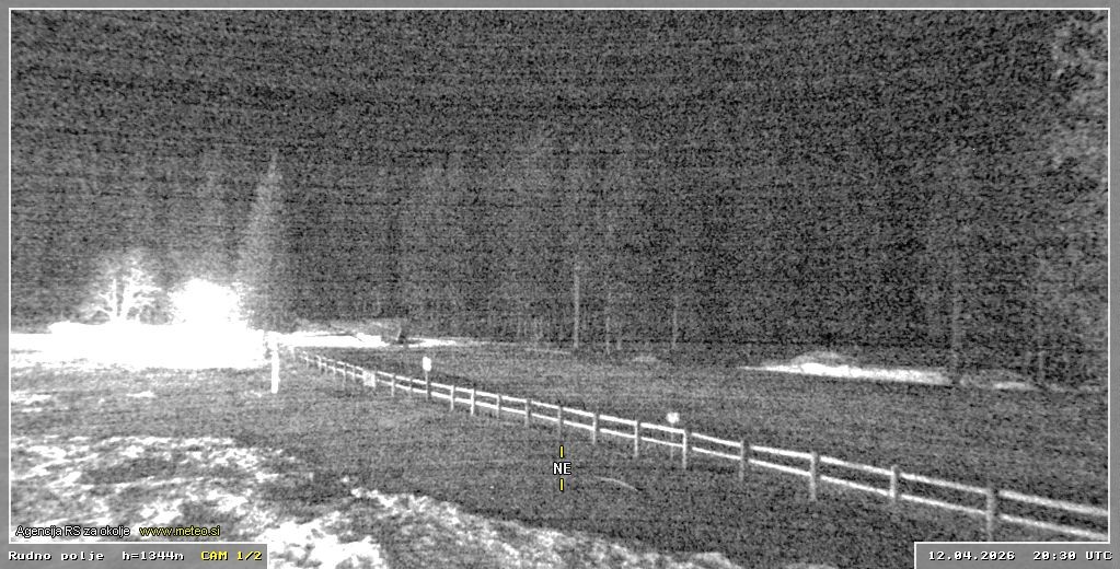 Archived webcam image showing Pokljuka: Biathlon Stadium Entrance on 12 Apr 2026 at 00:47 23:00