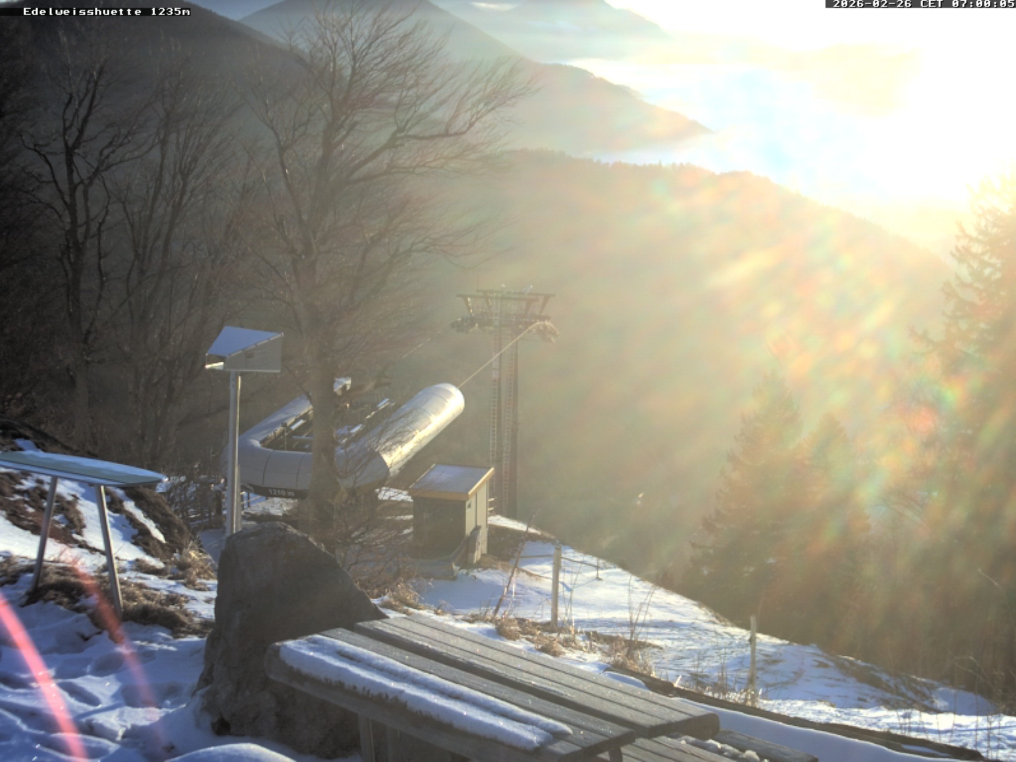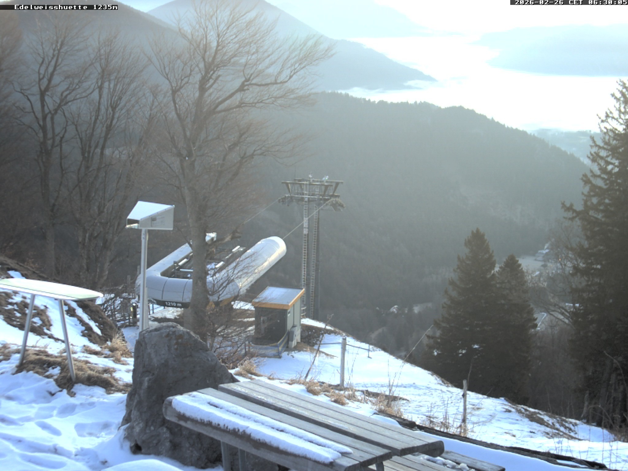 Archived webcam image showing Edelweisshütte am Schneeberg on 26 Feb 2026 at 06:53 05:00