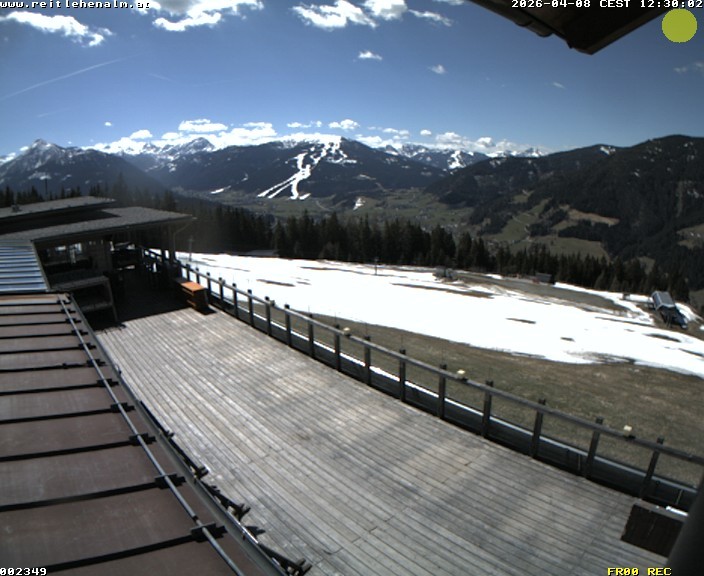 Archived webcam image showing mountain restaurant Reitlehen Alm on 8 Apr 2026 at 14:01 13:00