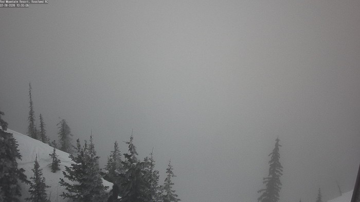 Archived webcam image showing Red Mountain Resort Slope and Lift on 26 Feb 2026 at 12:16 03:00