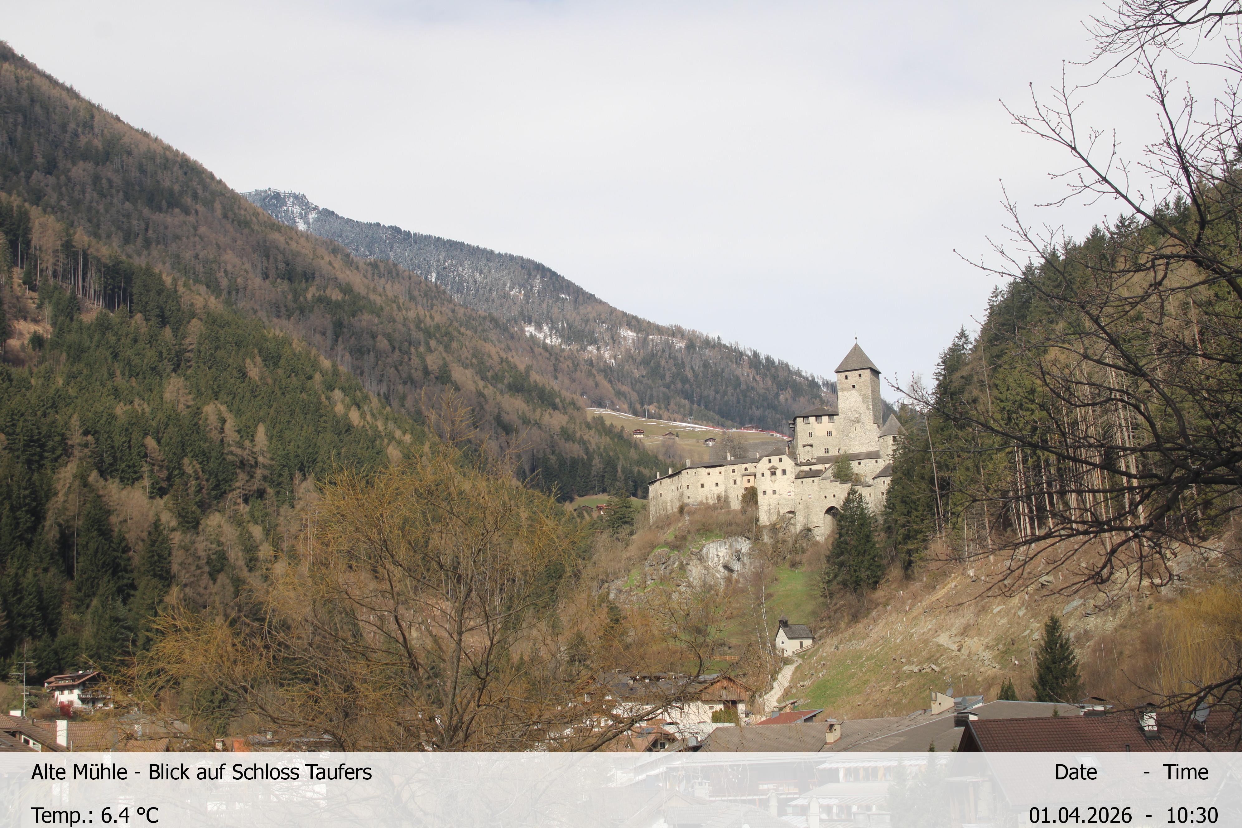 Archived webcam image showing View towards castle Taufers in South Tyrol on 1 Apr 2026 at 10:00 09:00