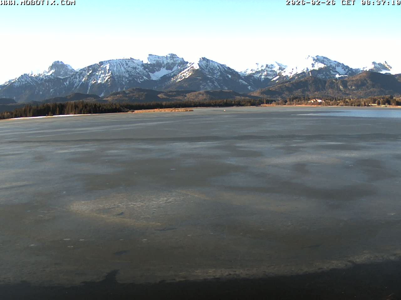 Archived webcam image showing Webcam at Hopfen am See: Restaurant Fischerhütte on 26 Feb 2026 at 08:13 07:00